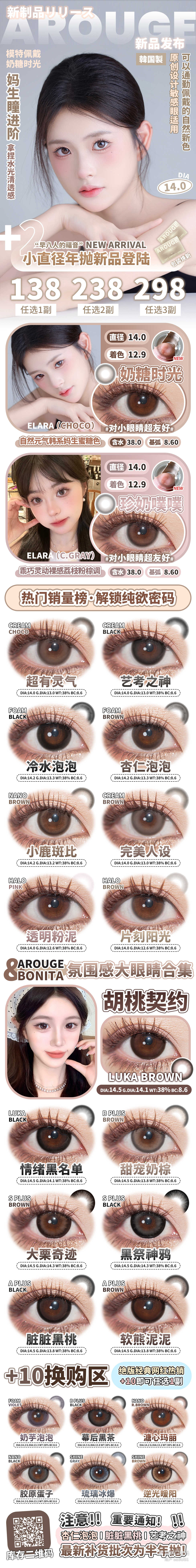 [韩国美瞳] Arouge 韩国甜妹必入韩产通勤天花板素颜瞳 年抛 一副(2片)
