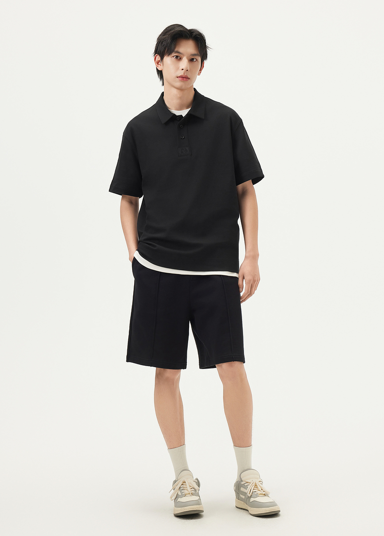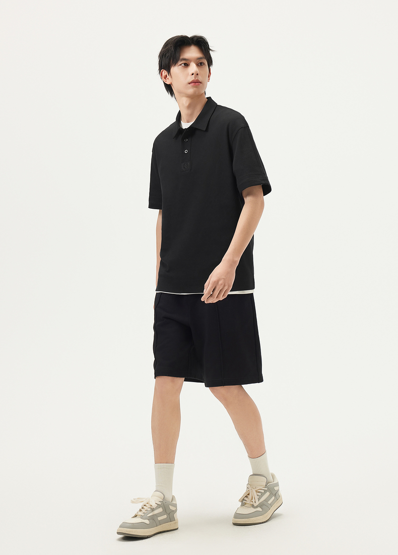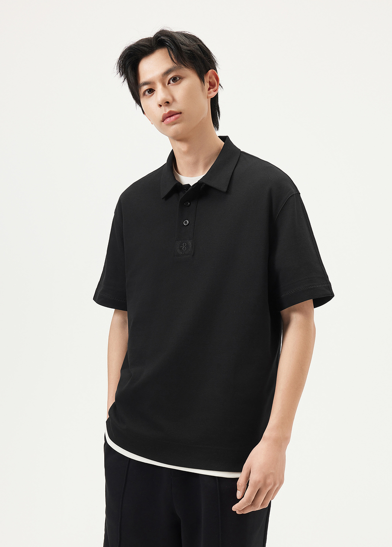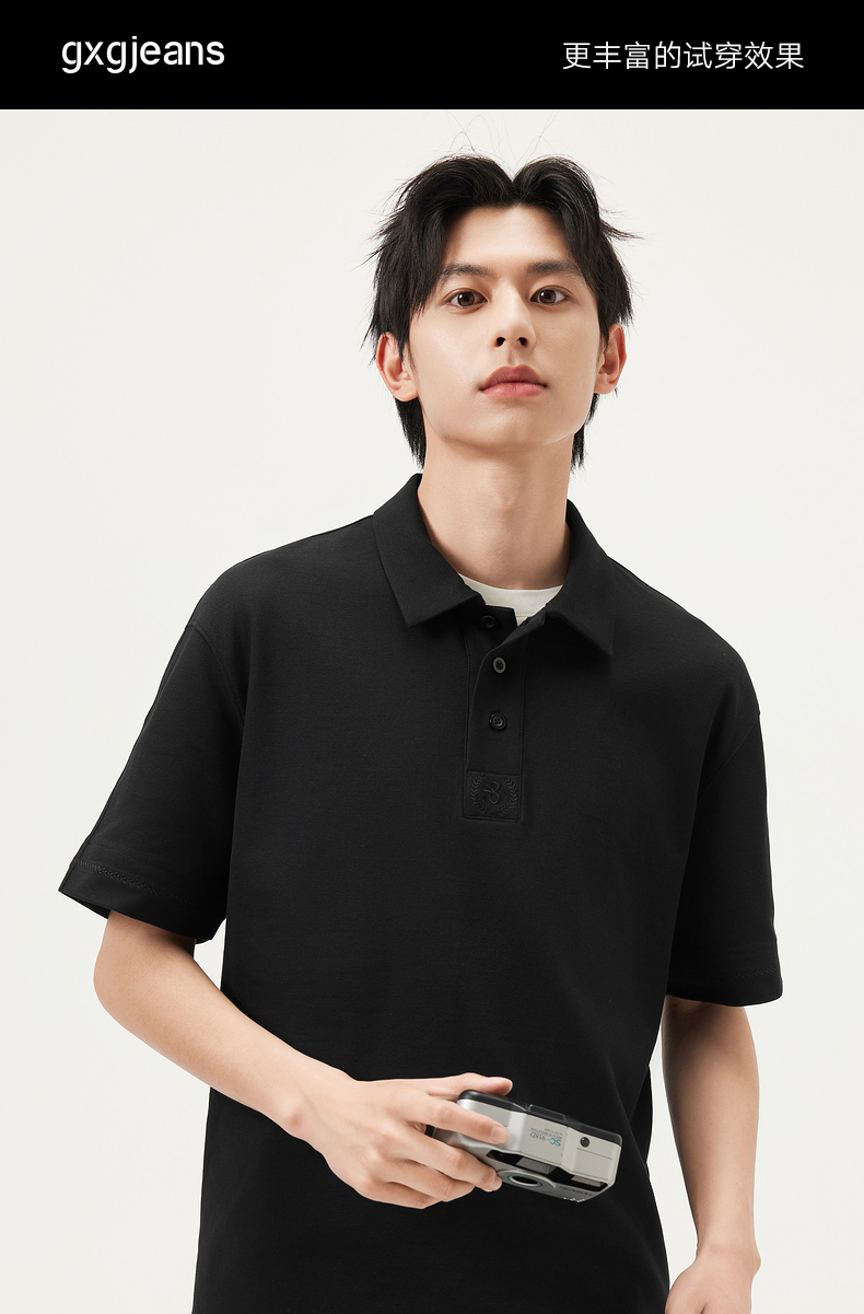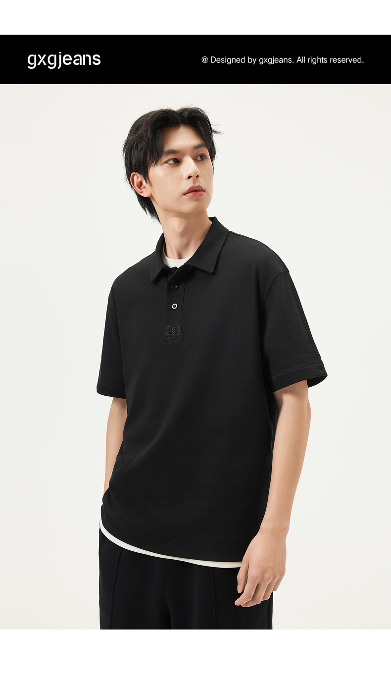 gxg.jeans男装 黑色简约刺绣休闲翻领短袖T恤POLO衫 25年夏热卖