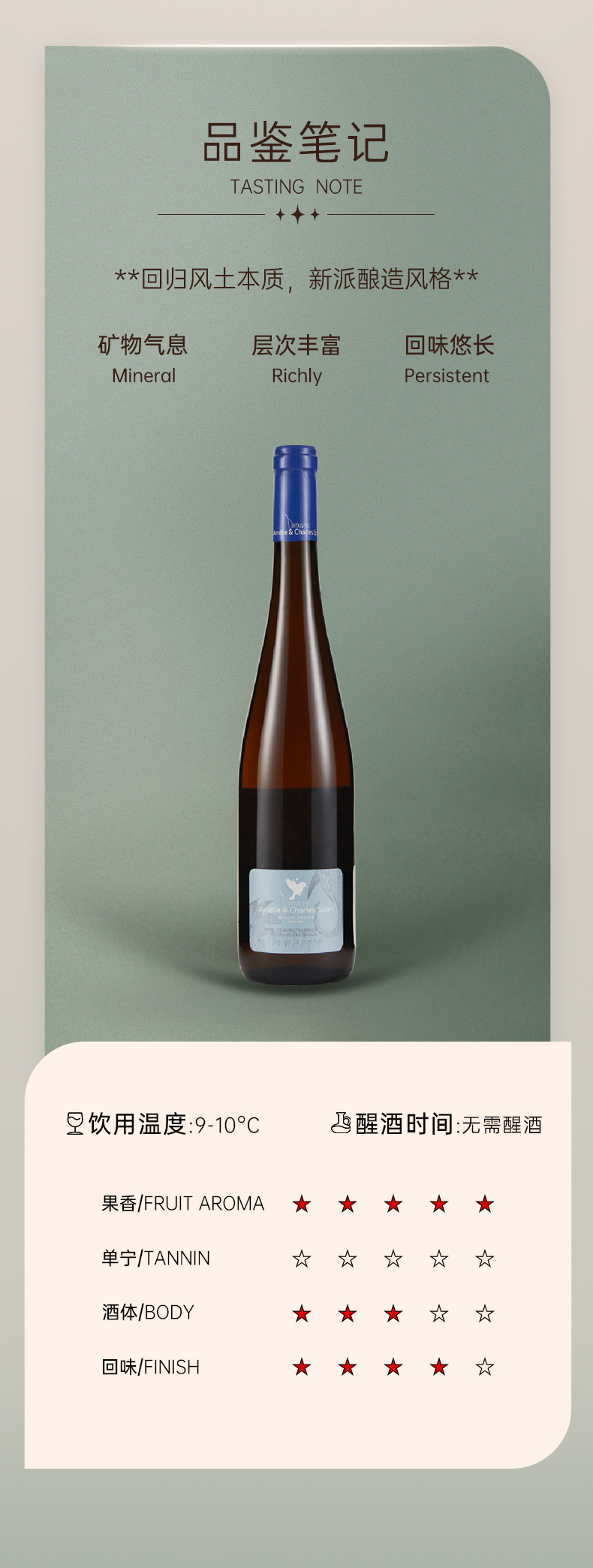 云雀酒庄琼瑶浆Grand Cru半干白葡萄 DOMAINE AMELIE & CHARLES SPARR Gewiirztraminer Grand Cru