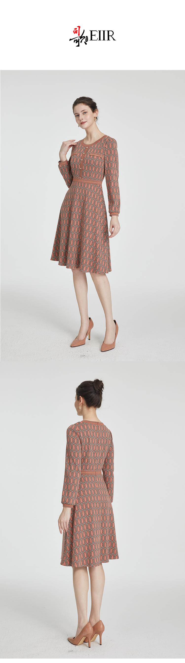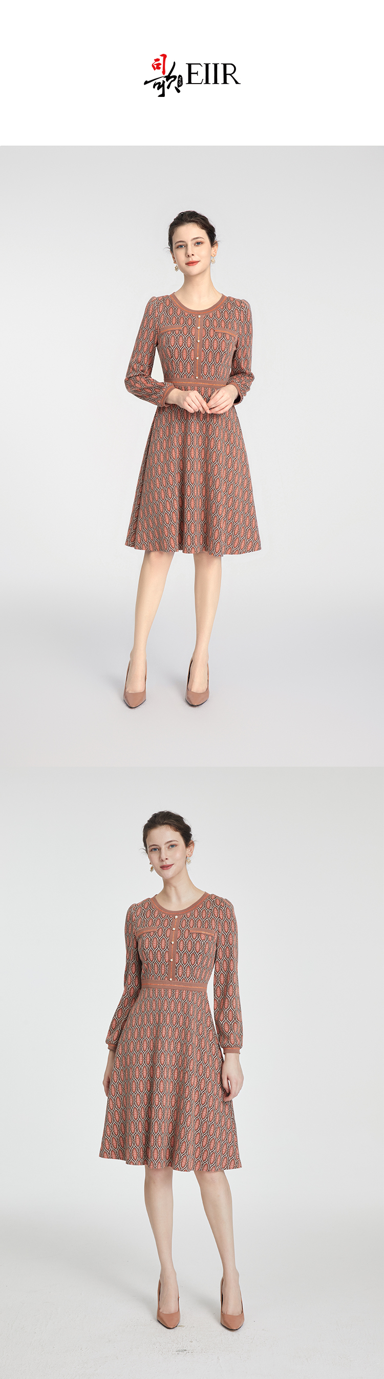 司歌弹力圆领长袖连衣裙冬女收腰A881127