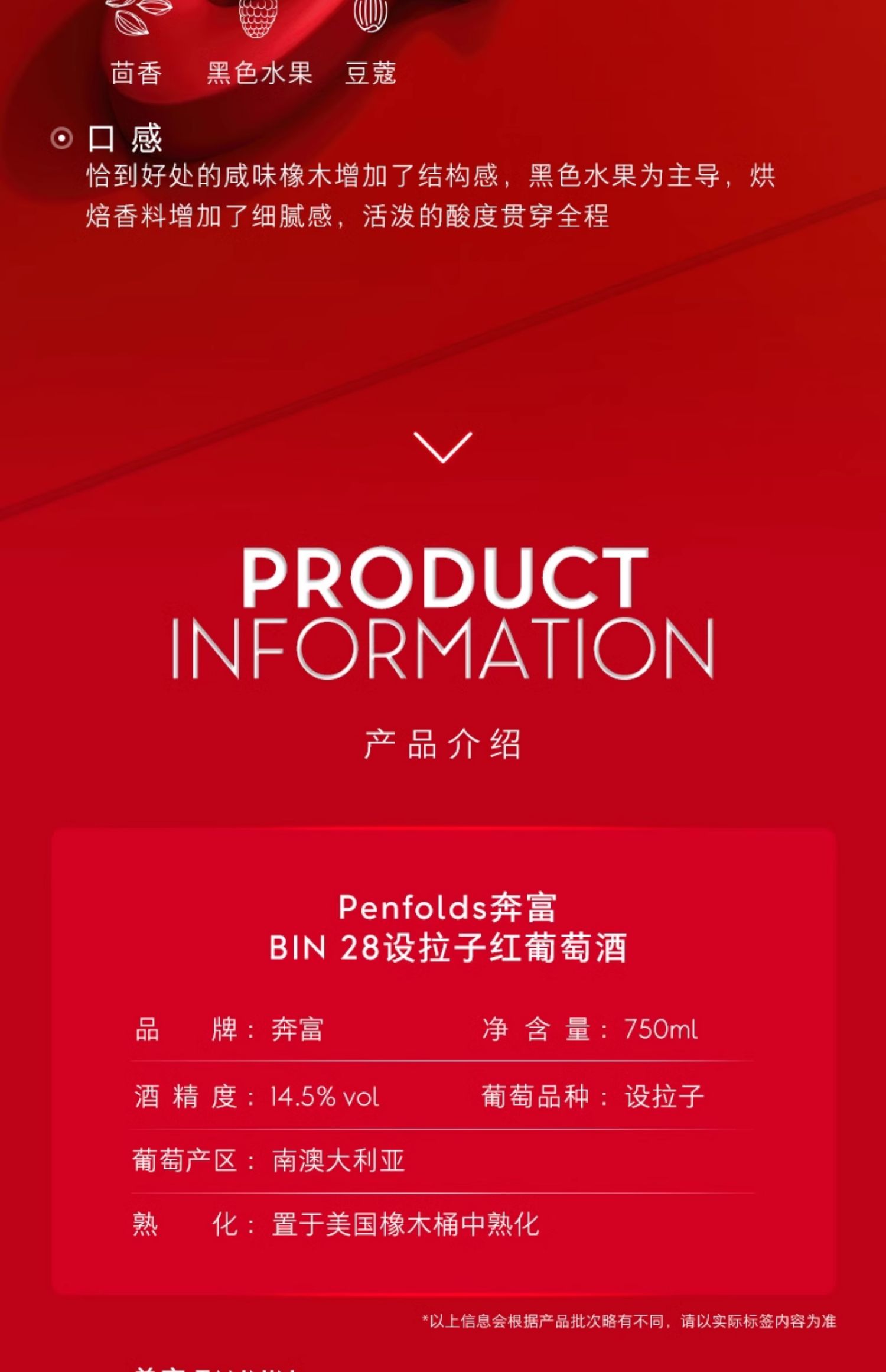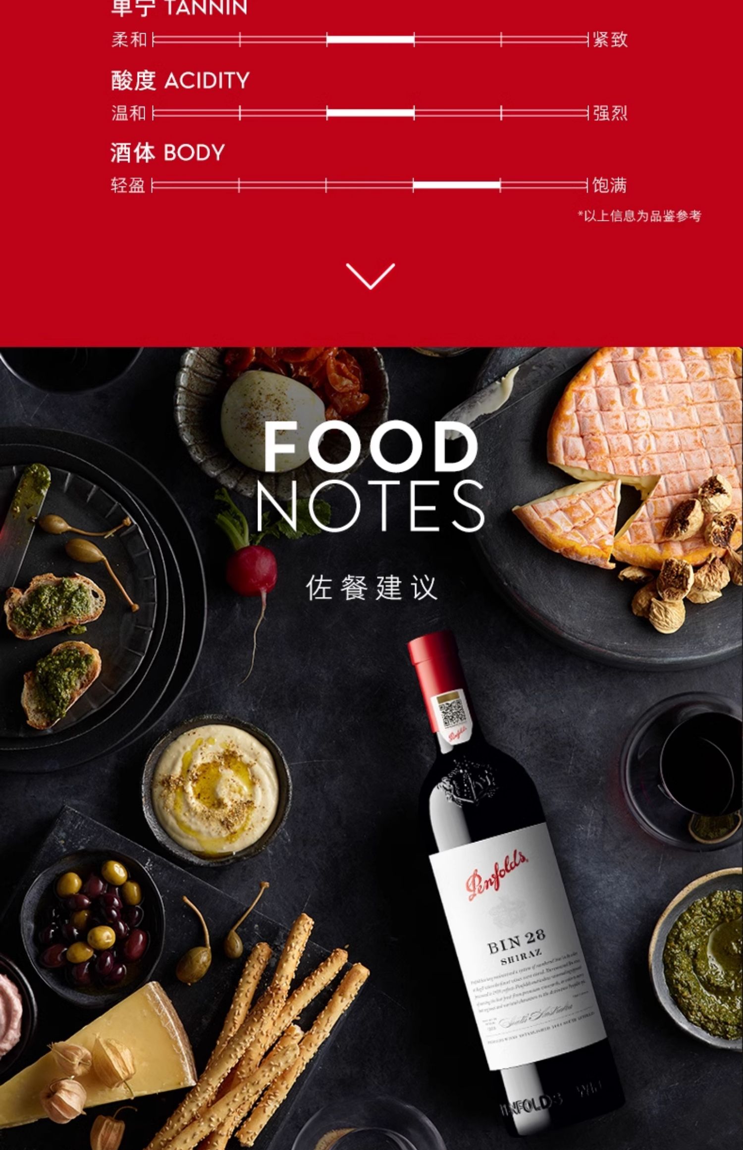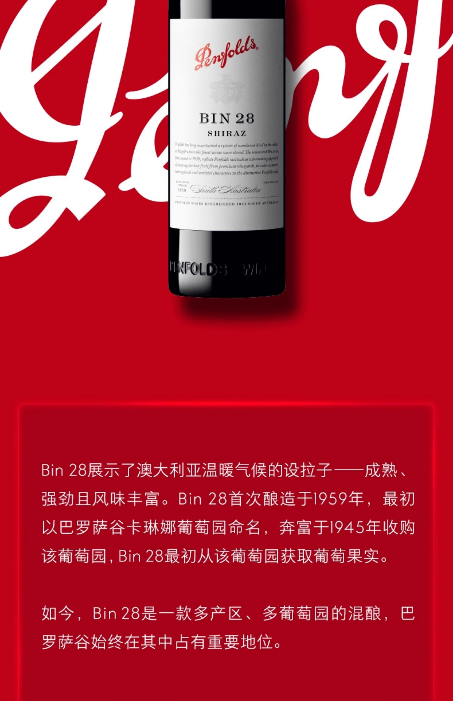 【国行正品】奔富 Penfolds Bin28 设拉子红葡萄酒750ml 澳洲原瓶进口 送礼宴请