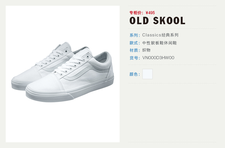 VANS范斯经典款白色男鞋女鞋Old Skool中性款休闲板鞋VN000D3HW00
