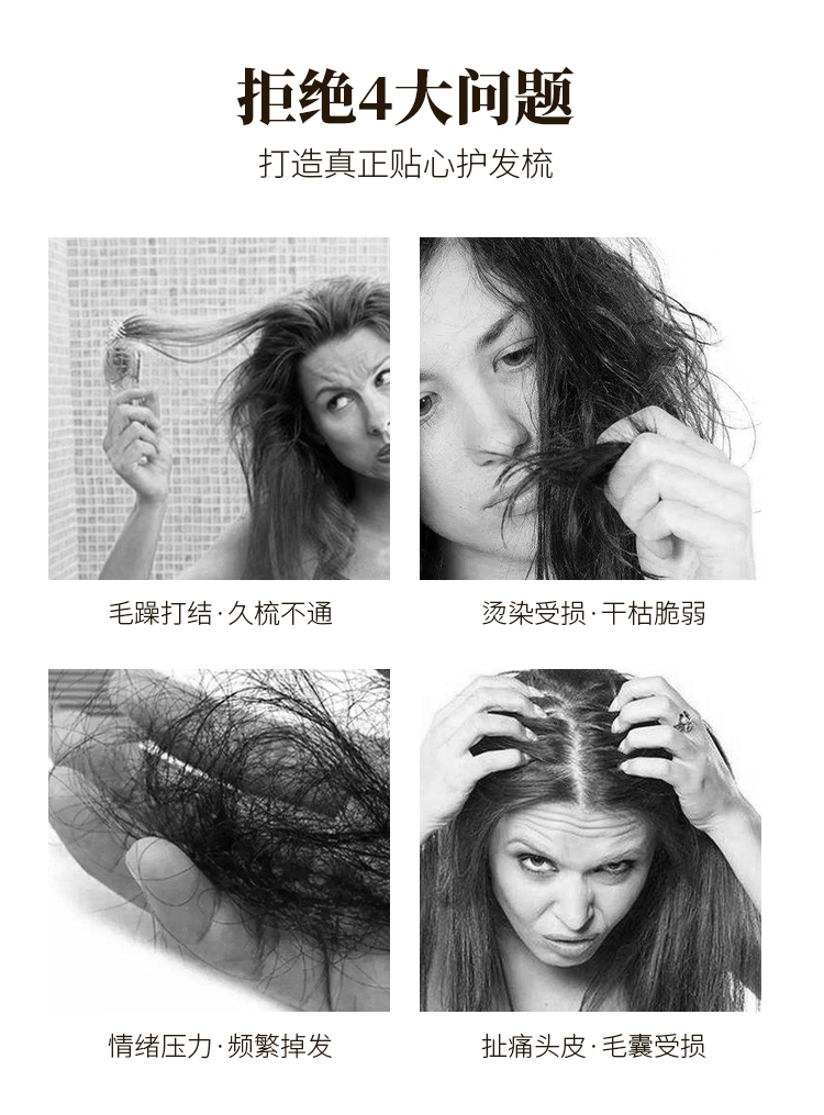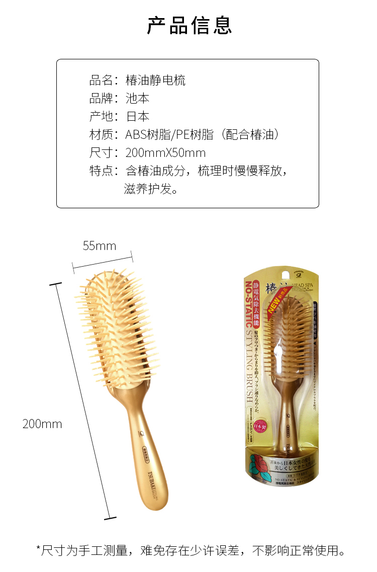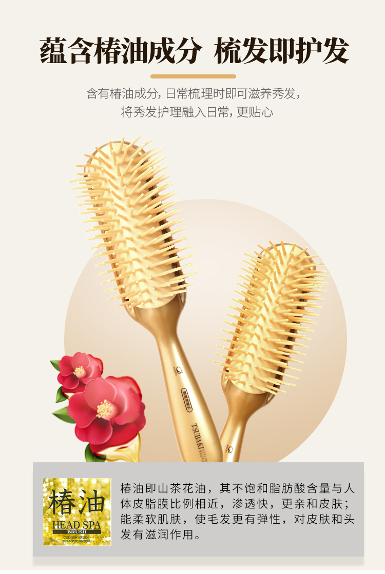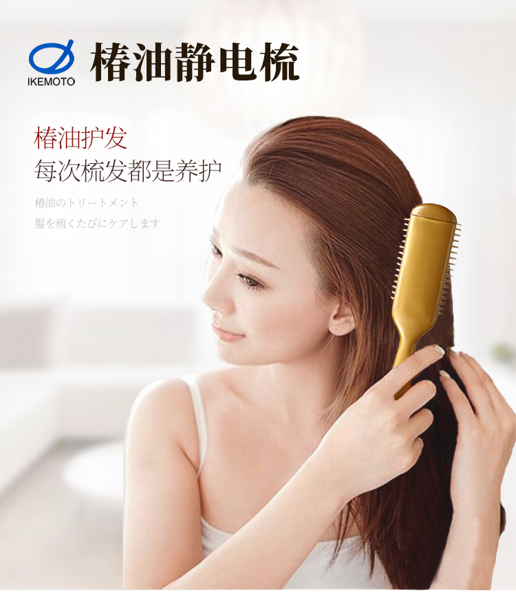 池本椿油静电按摩梳便携式日本进口椿油配合美发女性化妆梳子 WHJC