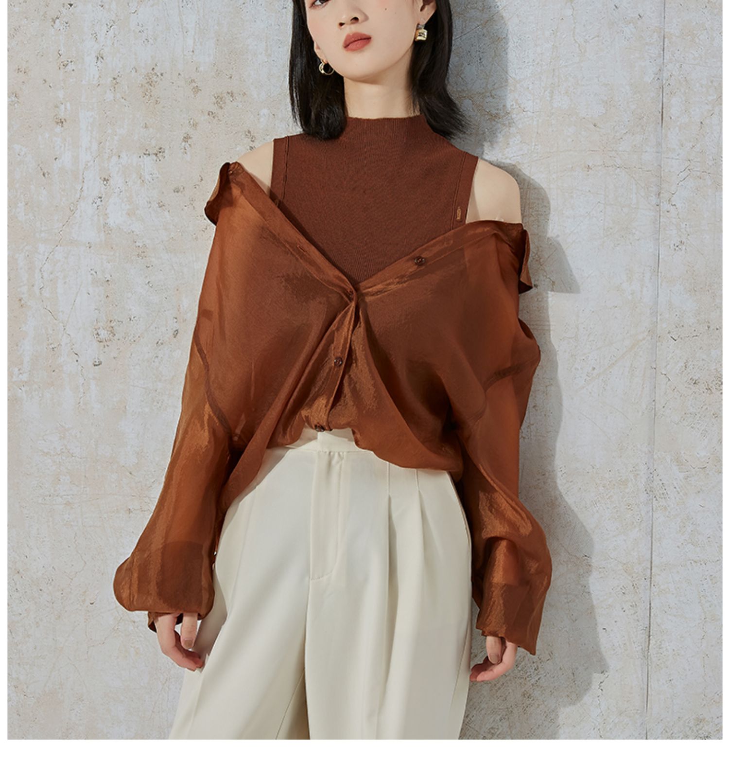 NUTS商场同款秋季时尚气质休闲百搭宽松显瘦长袖衬衫女231013061B