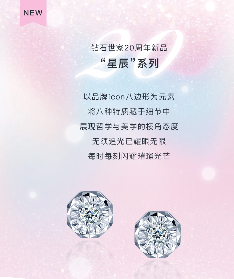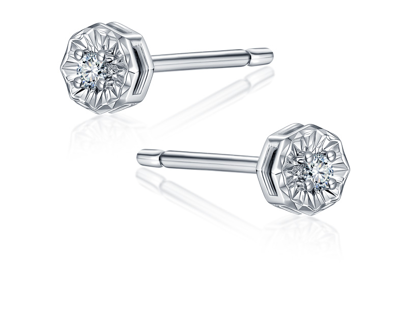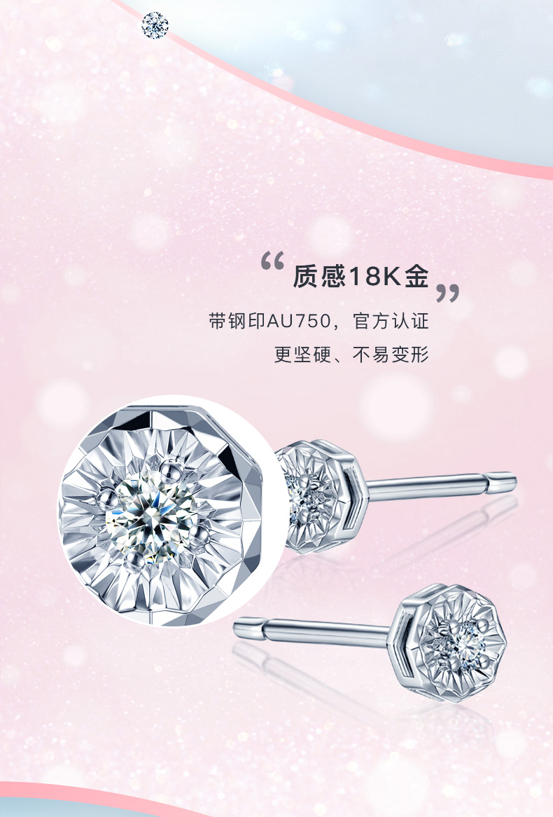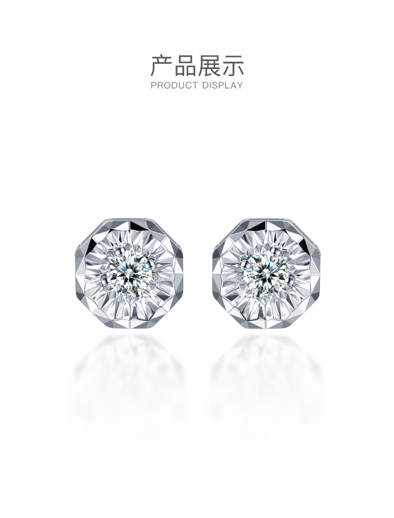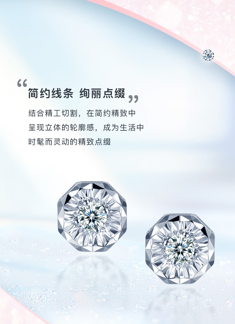 【甑选钻饰】【专享】钻石世家明星同款星辰系列18k金钻石耳钉 八边形设计感耳饰新品
