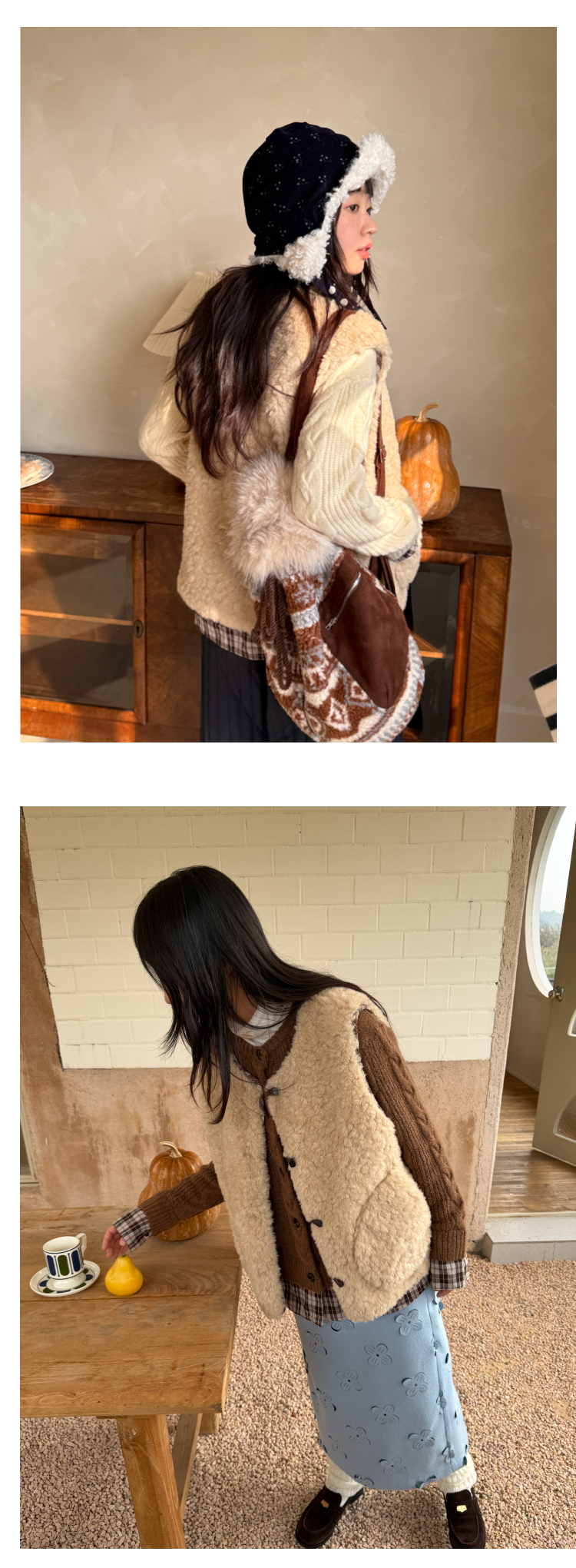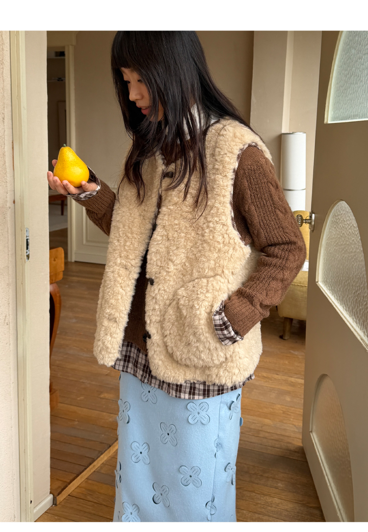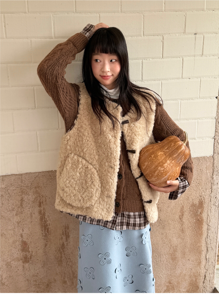 nothe Case布然/NC254206/「洋梨摩卡」双面穿毛马甲