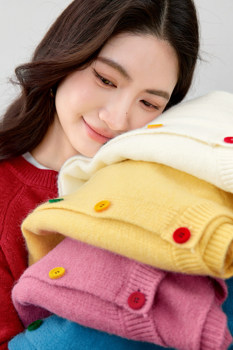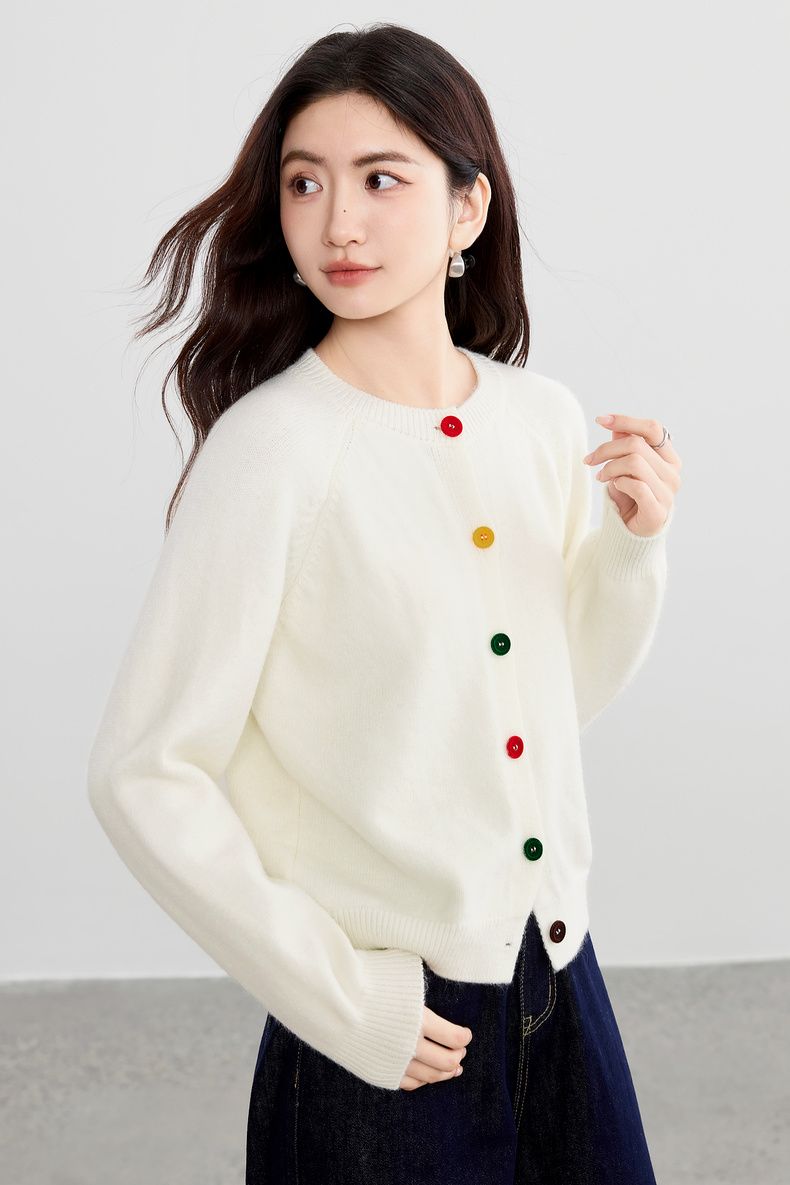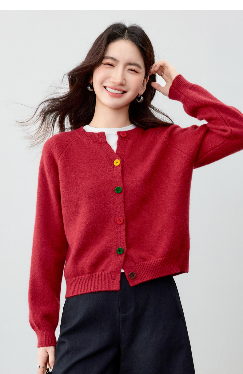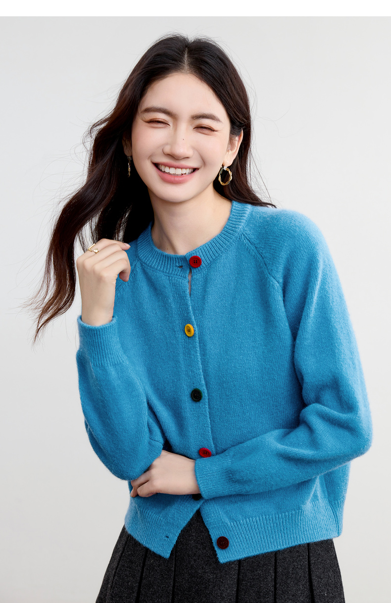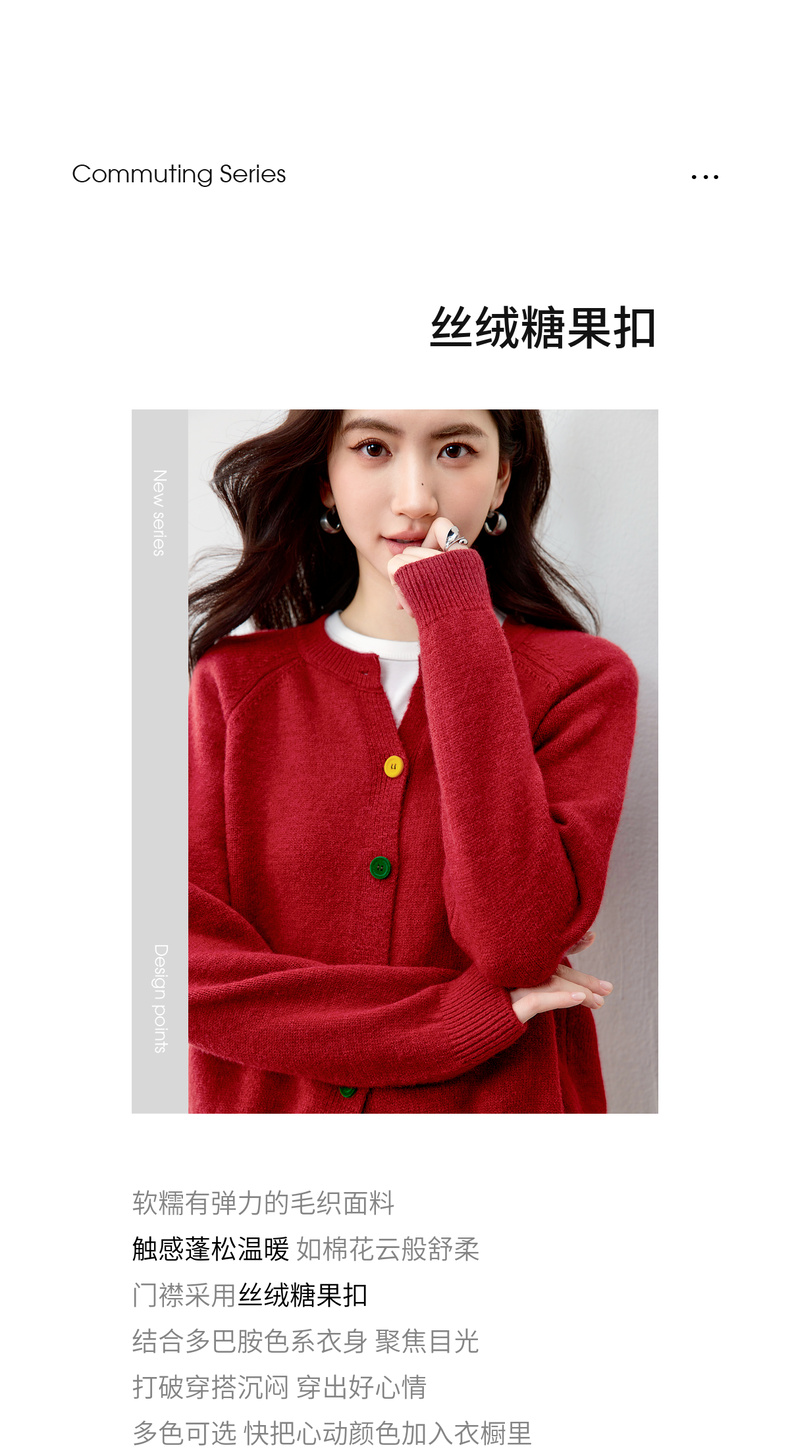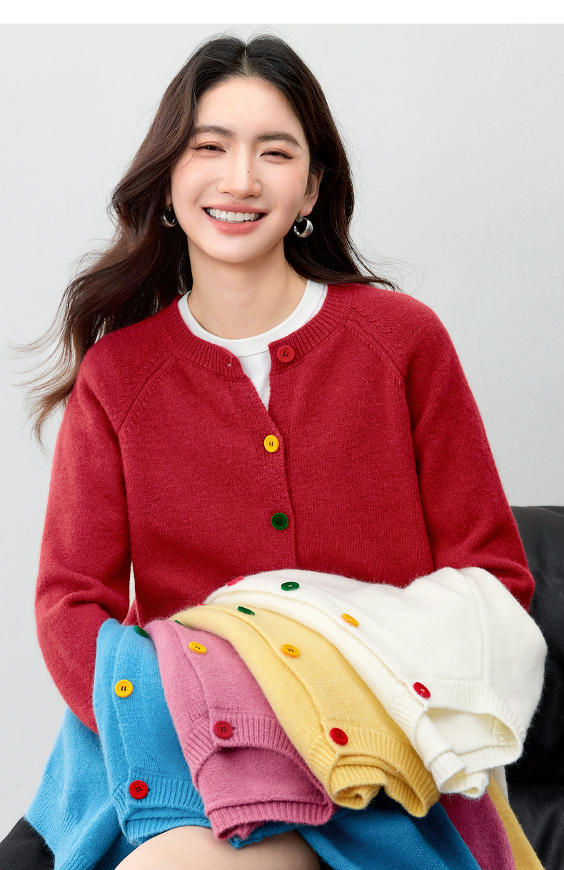 【内购】【5色可选】多巴胺通勤圆领丝绒糖果扣插肩袖弹力厚开衫针织衫-W53HB2273