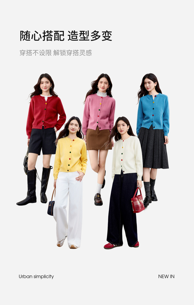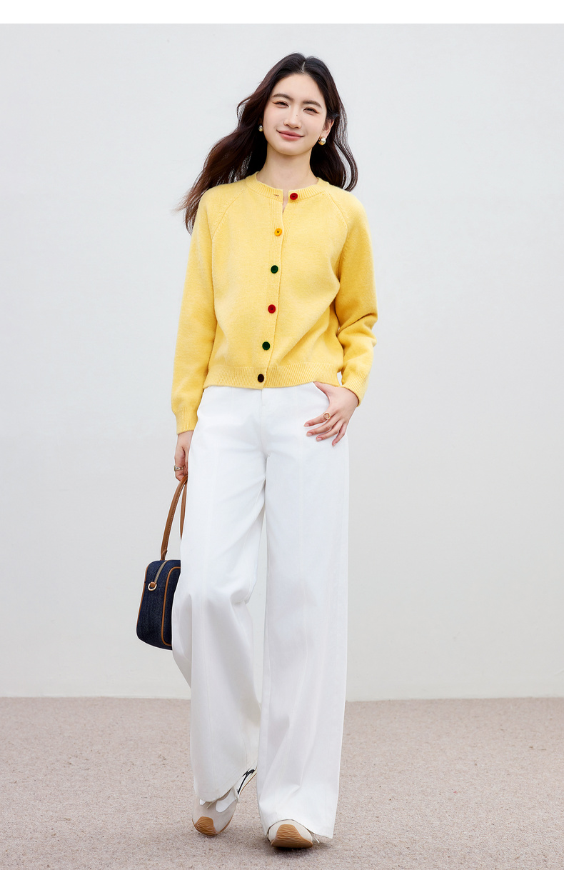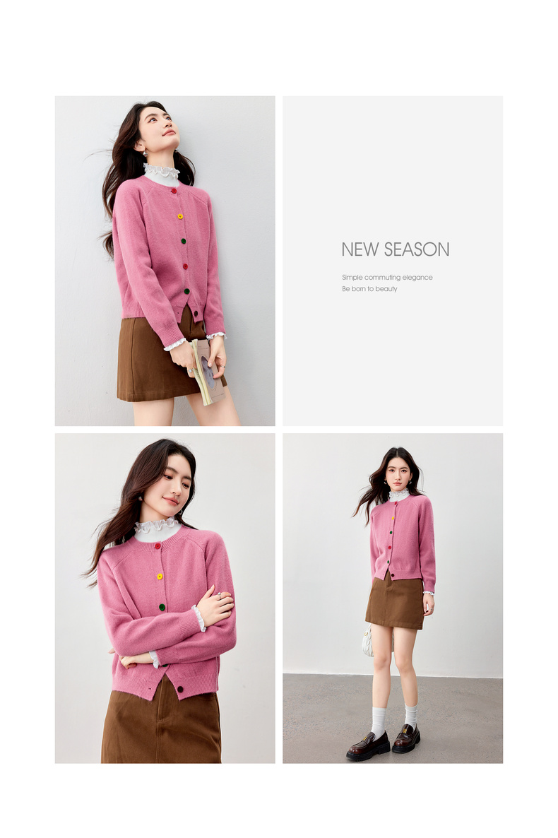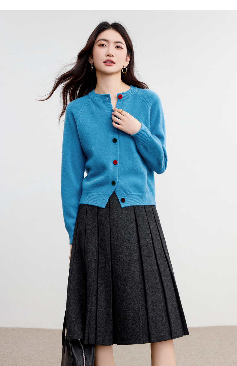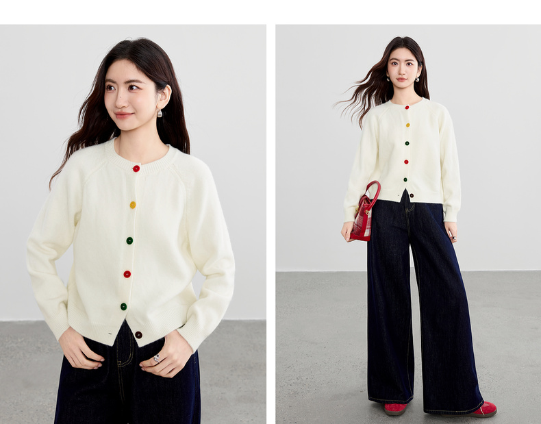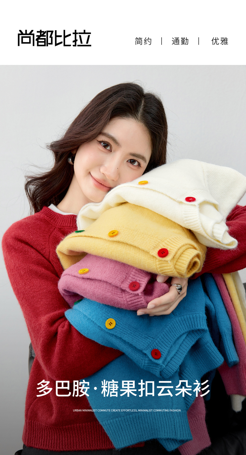 【内购】【5色可选】多巴胺通勤圆领丝绒糖果扣插肩袖弹力厚开衫针织衫-W53HB2273