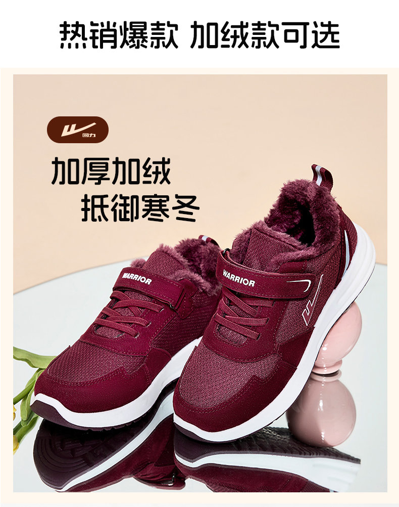 回力老人鞋秋季爸爸健步鞋加厚加绒软底一脚蹬中老年妈妈运动男鞋