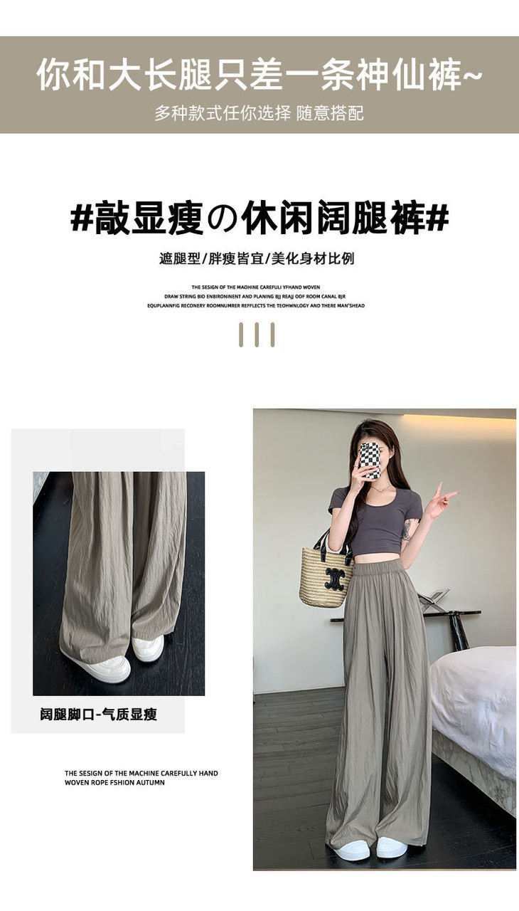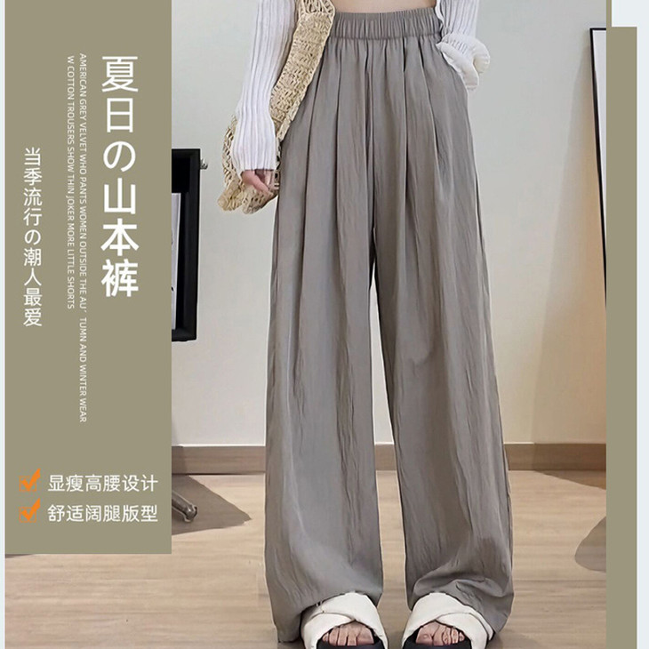 【慵懒风❗️垂感肌理山本裤】敲显瘦,不挑身材,日系高腰+阔腿裤版型 搭配简约T恤、村衫都可~新款夏季宽松休闲裤春款女裤子L★美物社