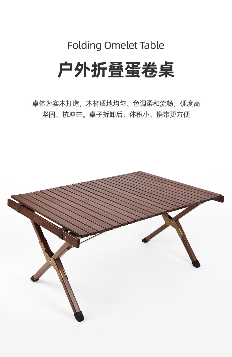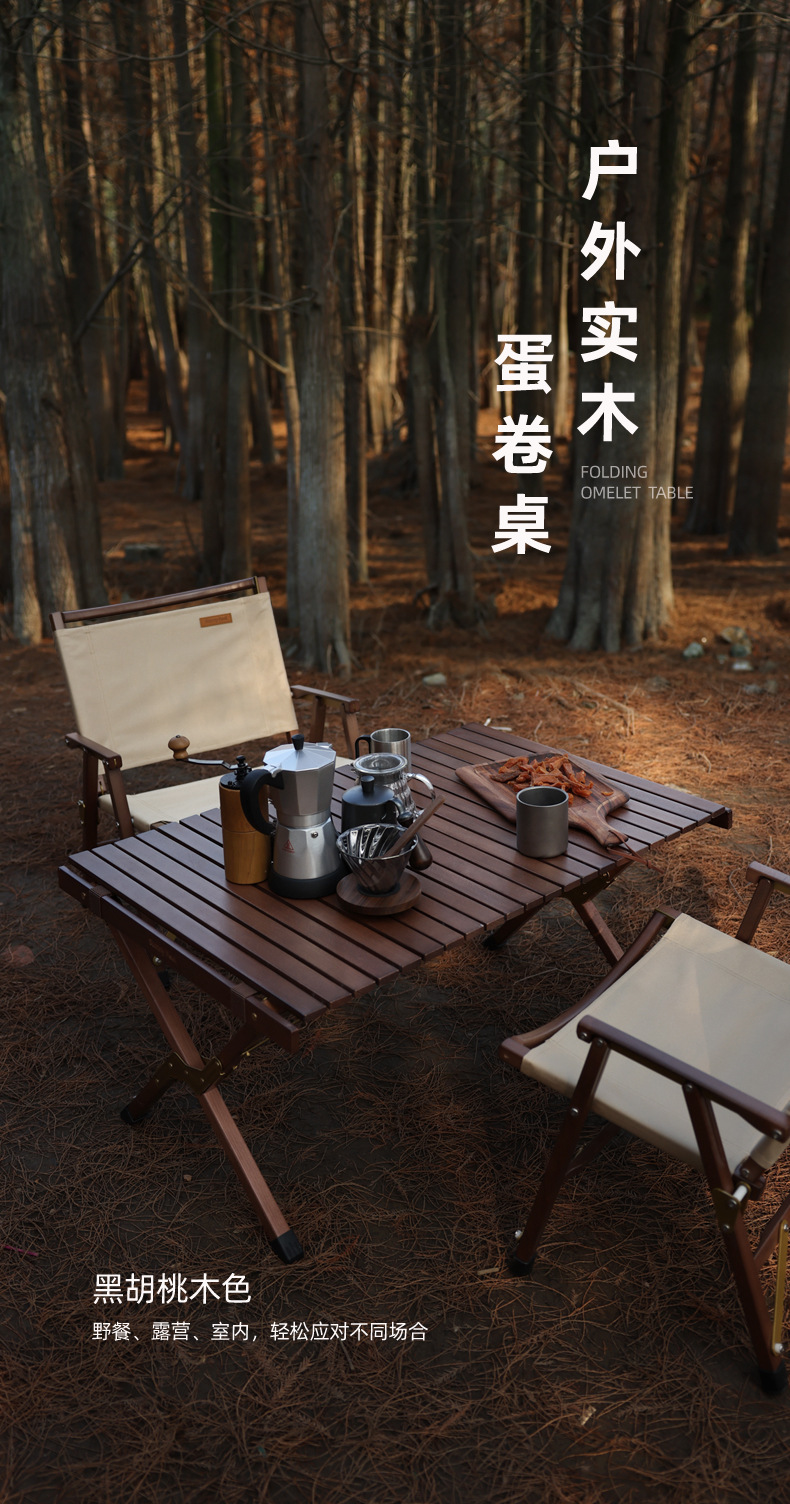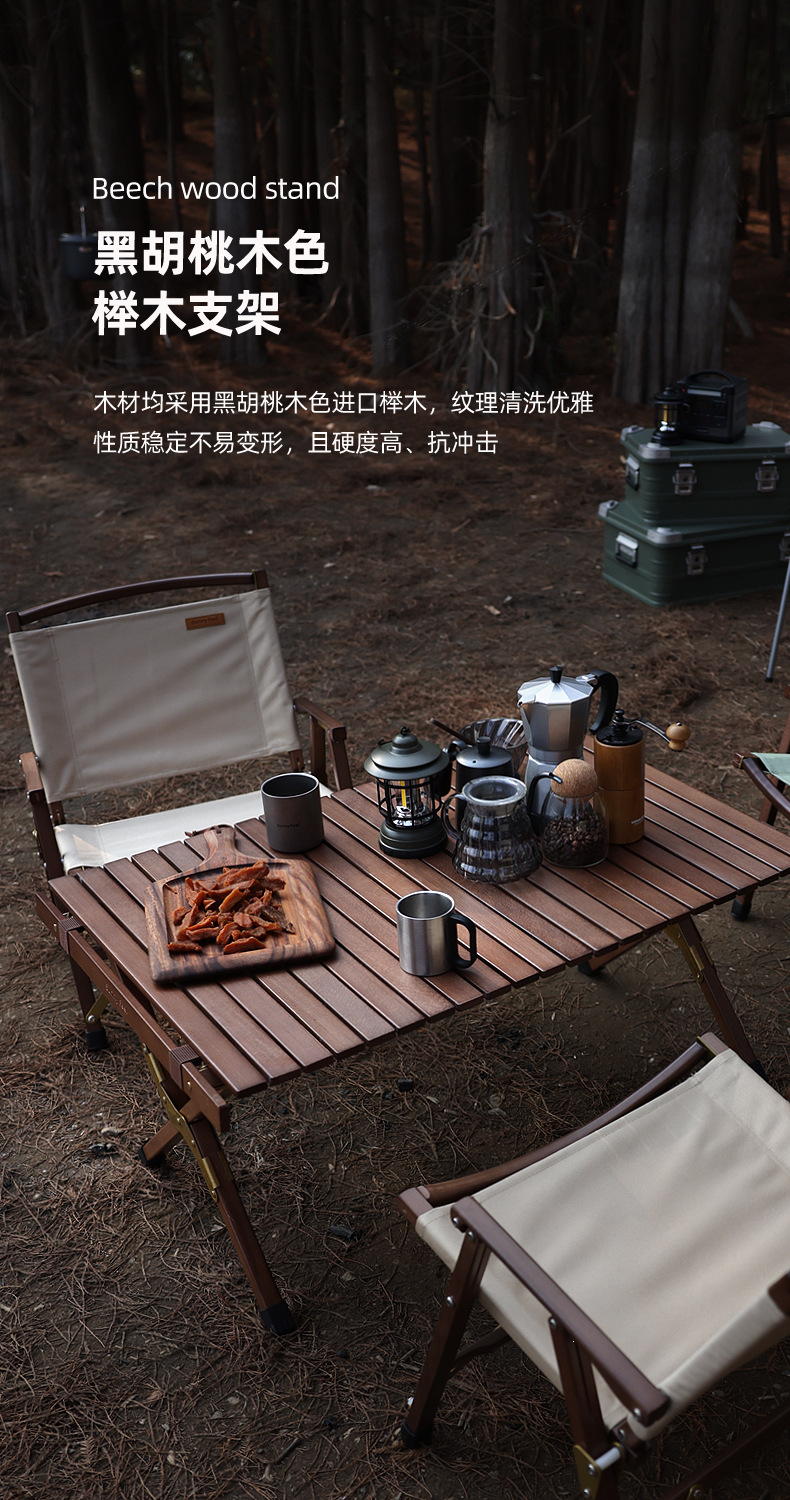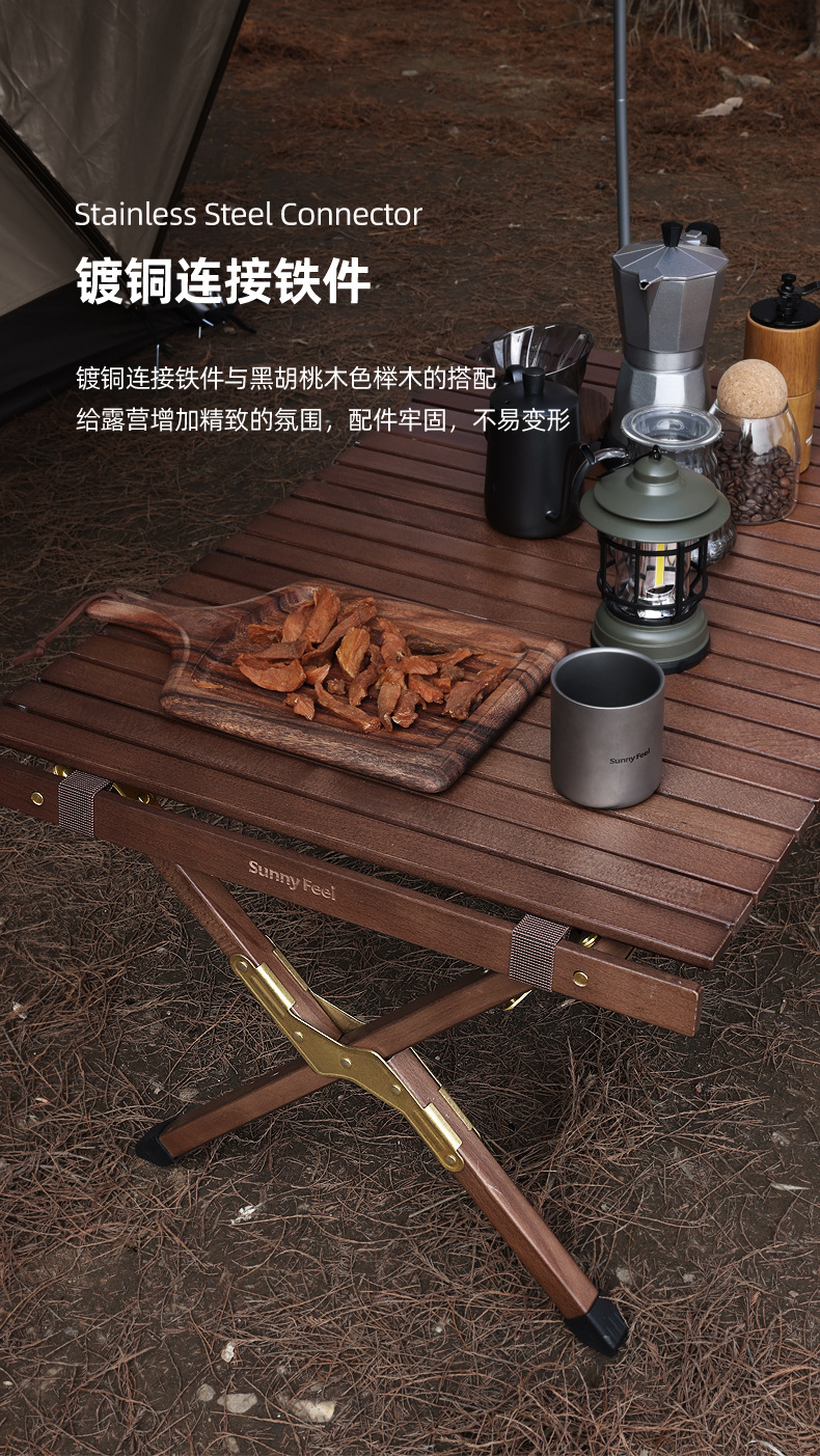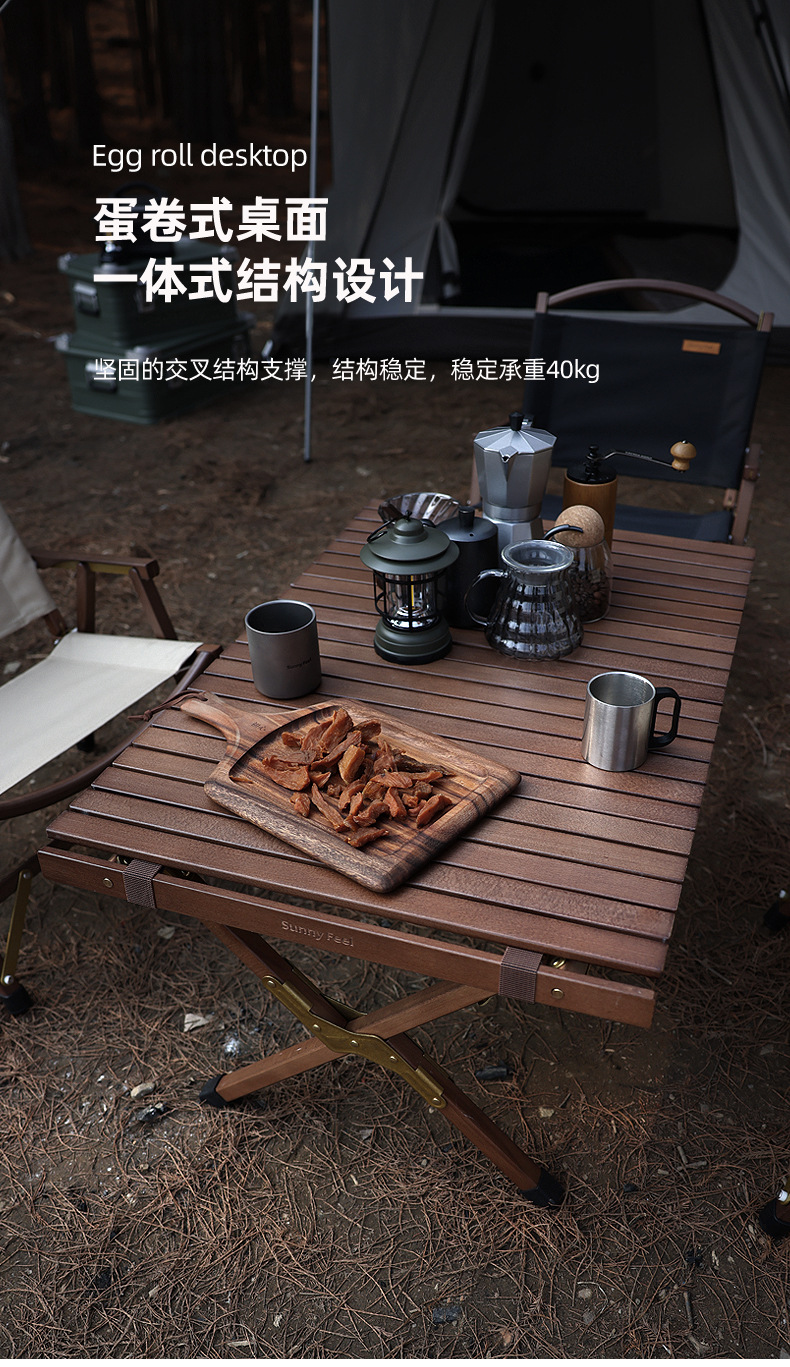 SunnyFeel户外露营折叠桌野营蛋卷桌_可拆卸实木桌榉木黑胡桃桌