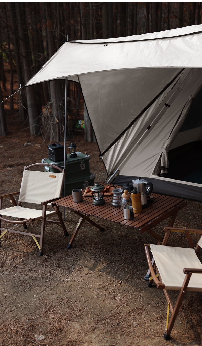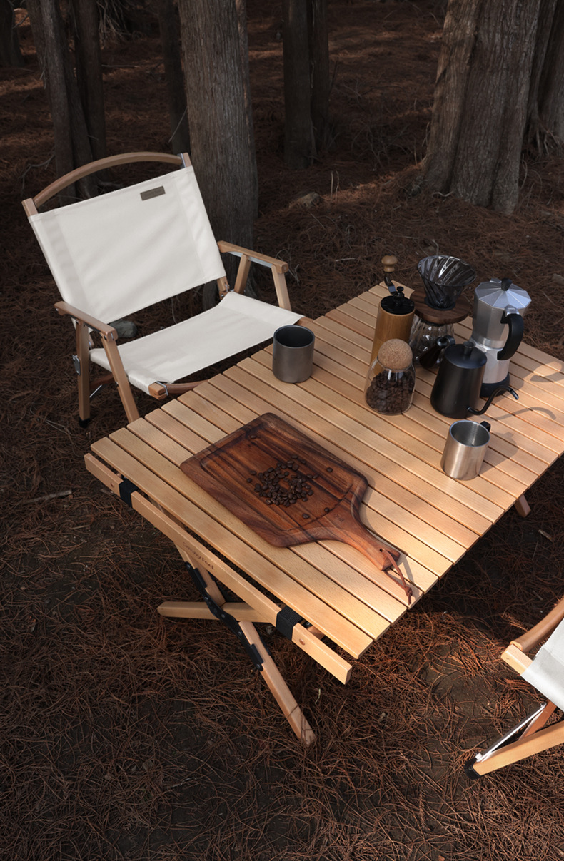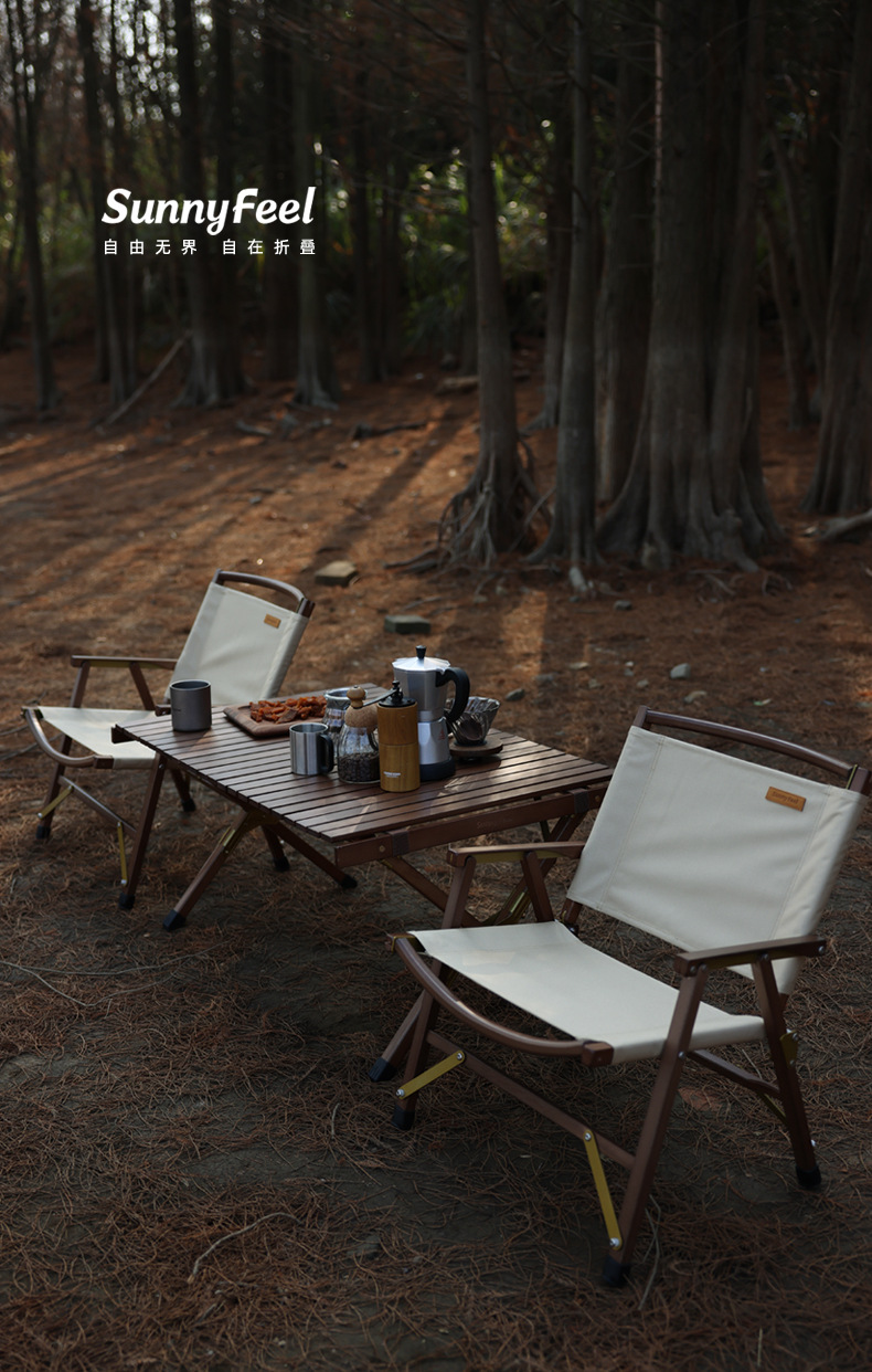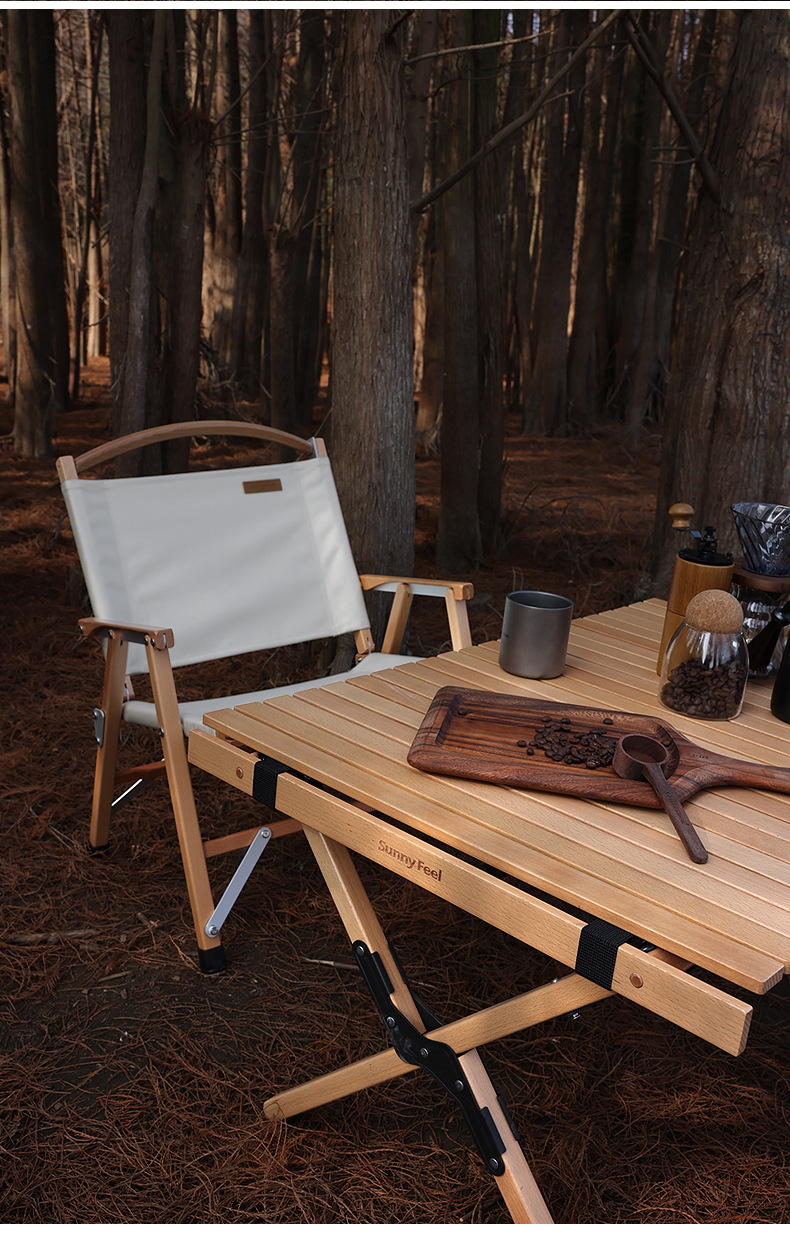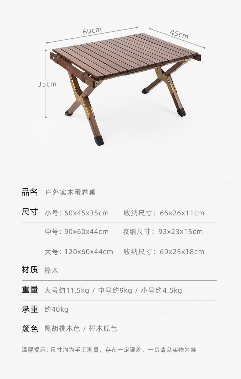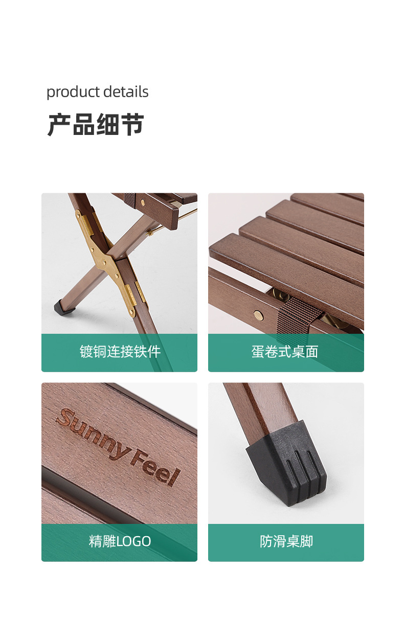 SunnyFeel户外露营折叠桌野营蛋卷桌_可拆卸实木桌榉木黑胡桃桌