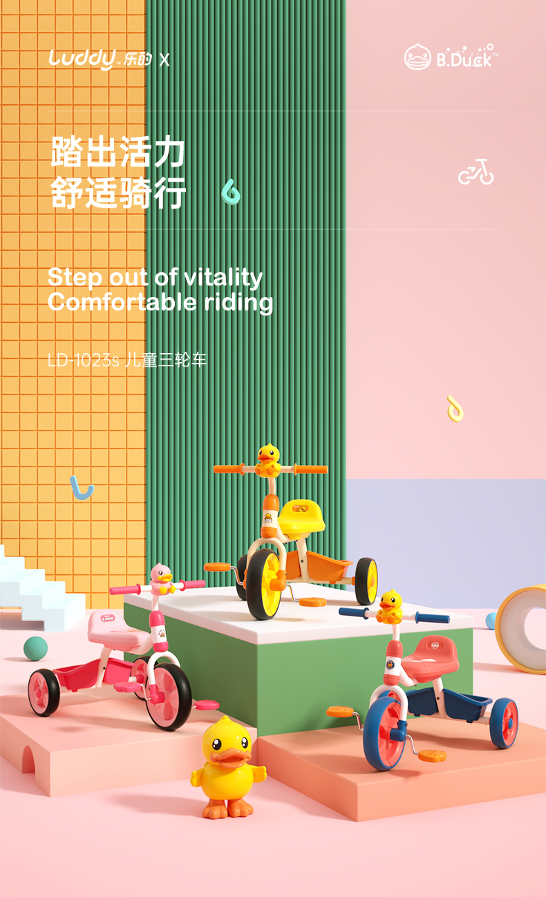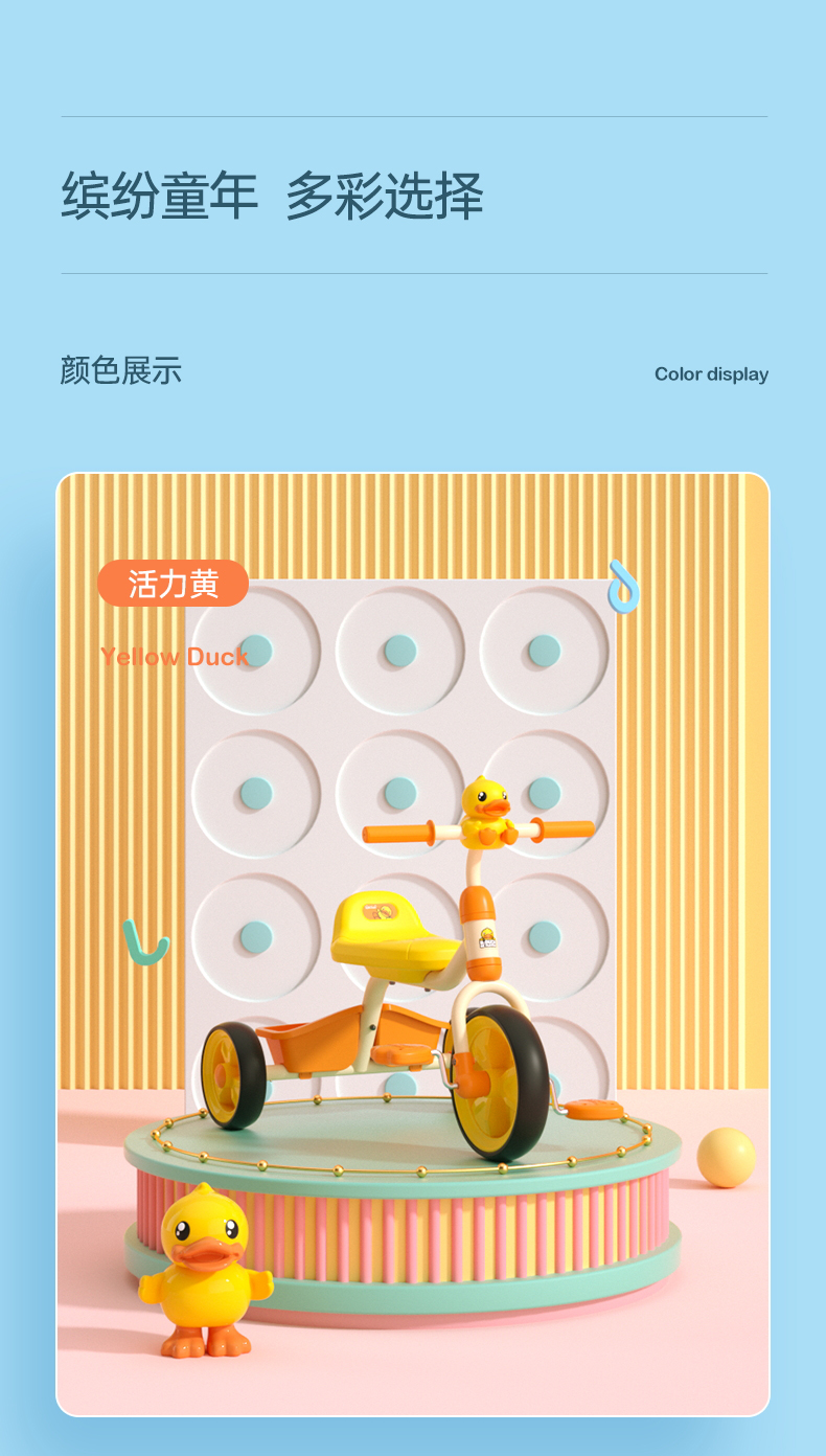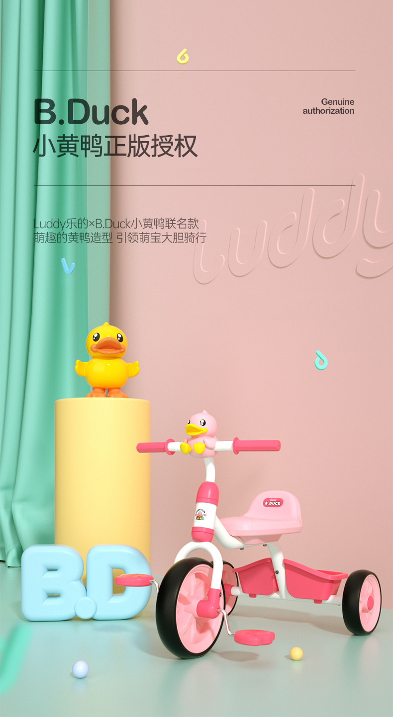 乐的小黄鸭儿童三轮车脚踏车1-6岁宝宝小孩脚蹬自行车婴幼儿童车LD-1023S