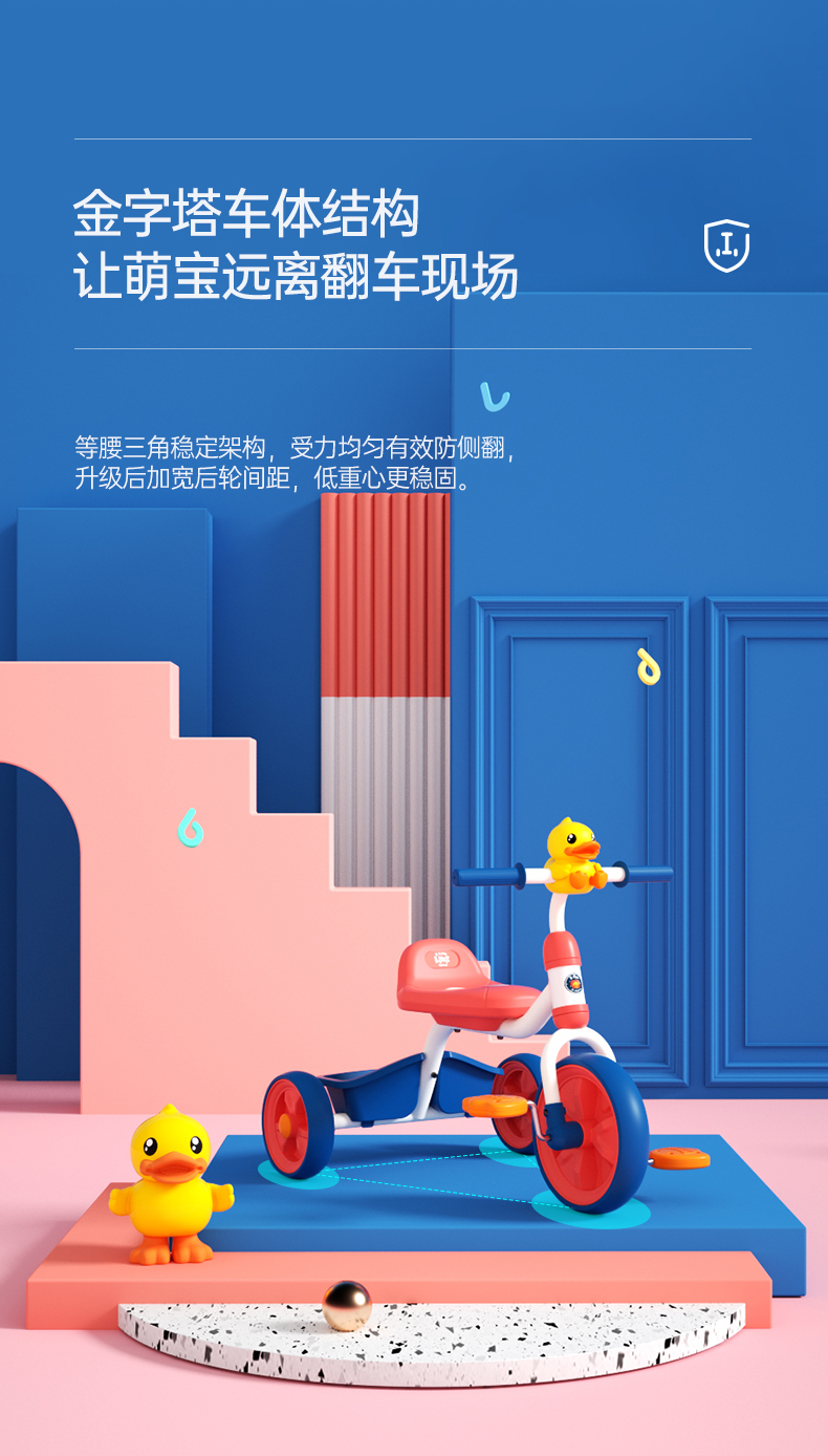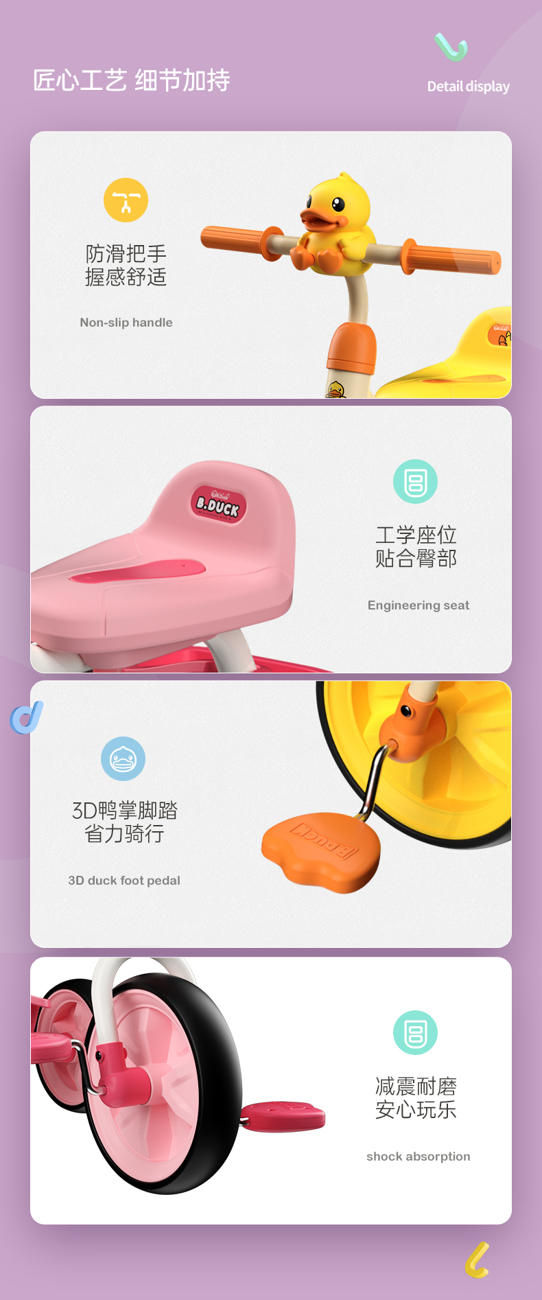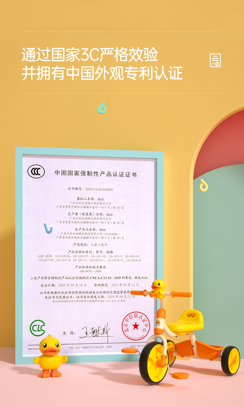 乐的小黄鸭儿童三轮车脚踏车1-6岁宝宝小孩脚蹬自行车婴幼儿童车LD-1023S