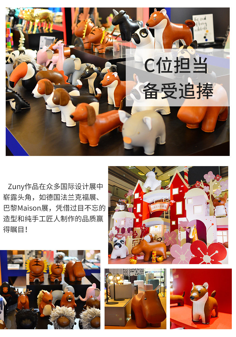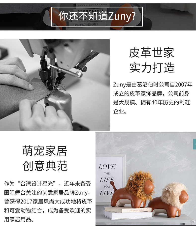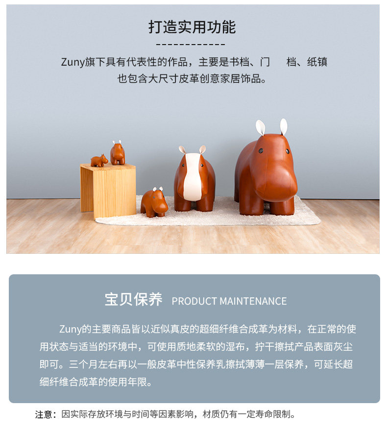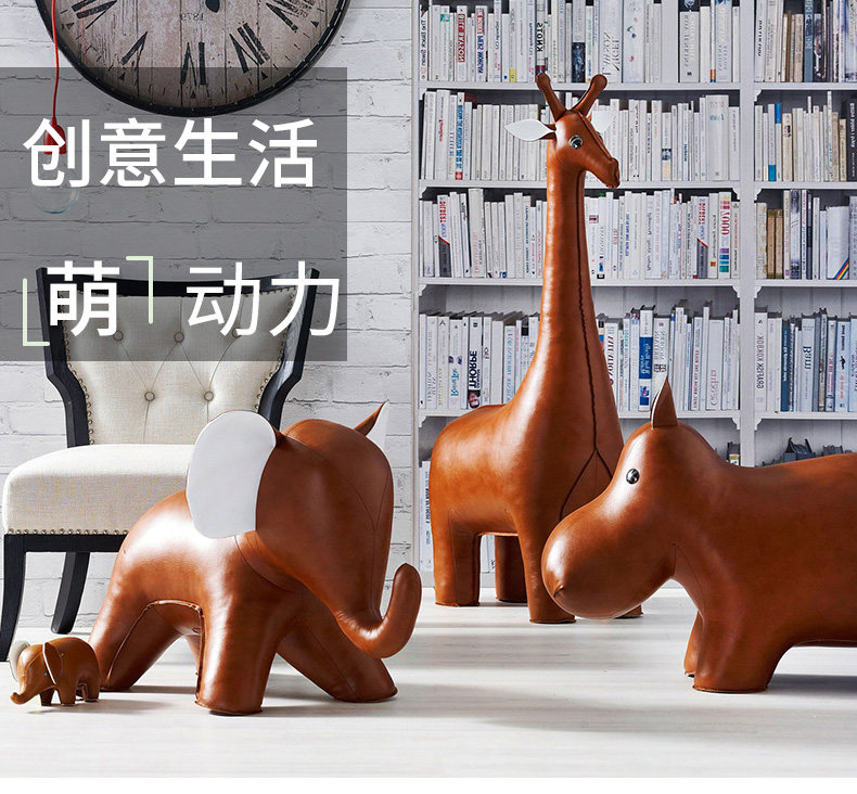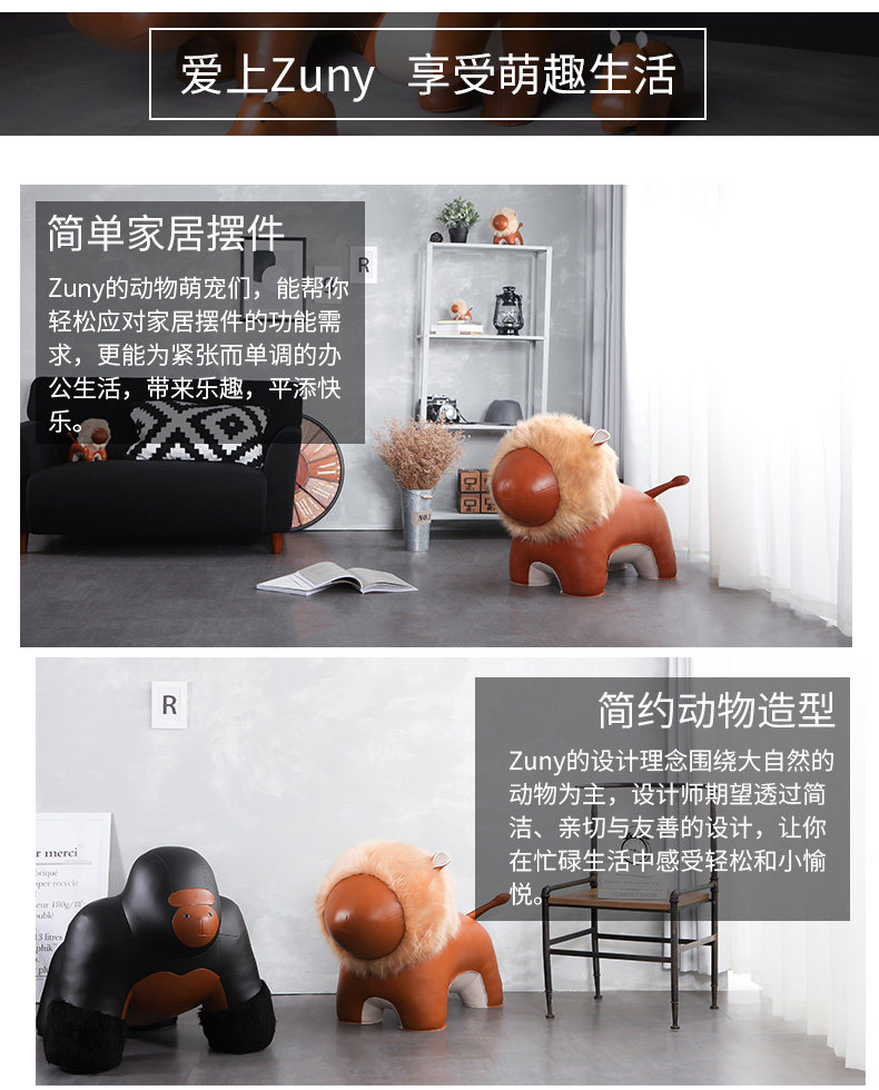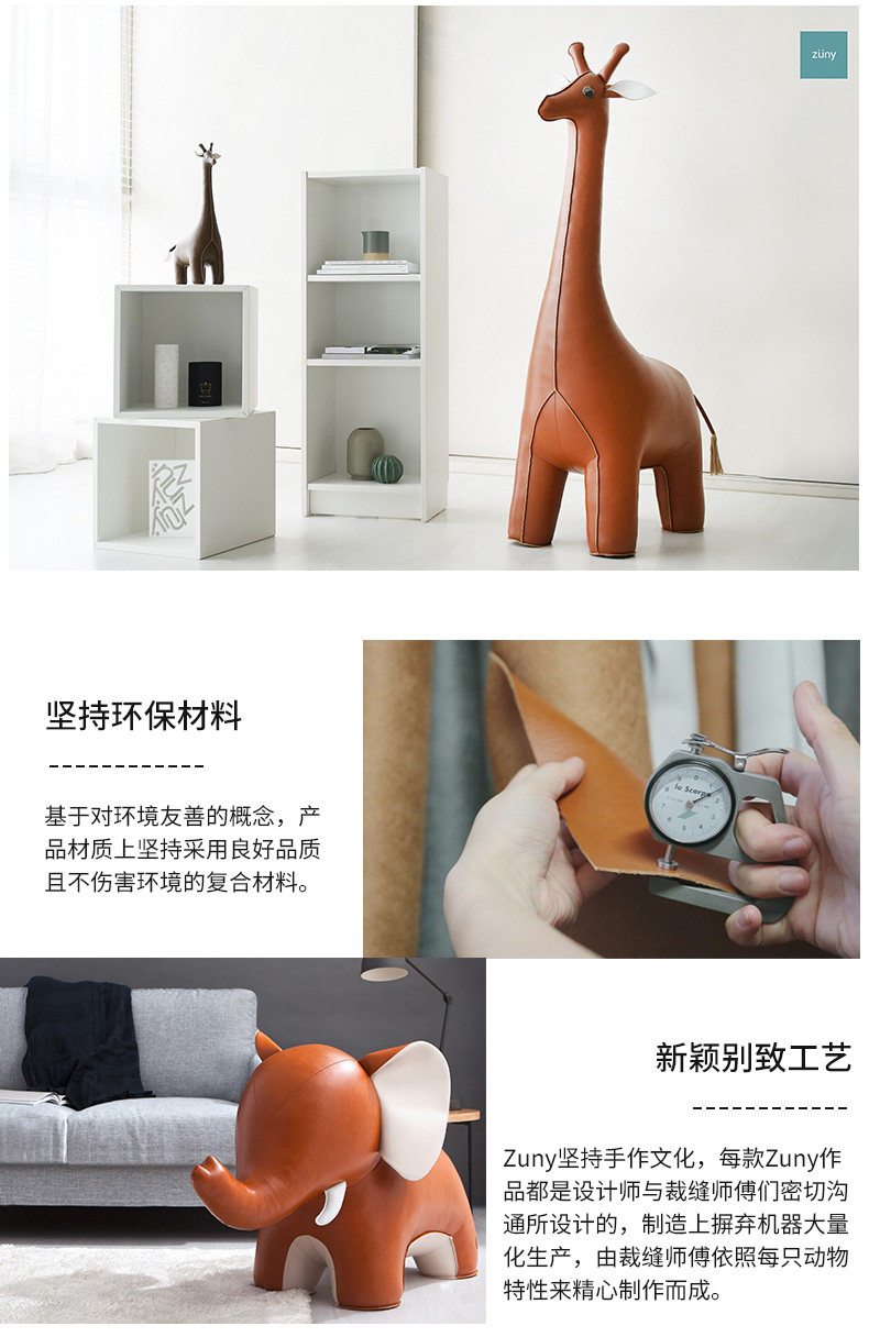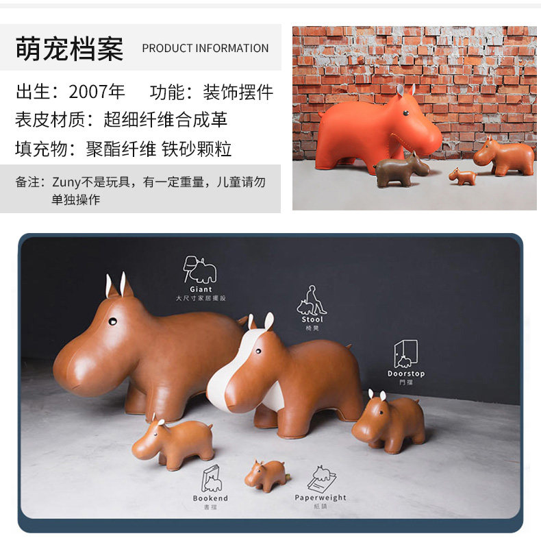 Zuny 超大款 狮子长颈鹿大象河马独角兽 超大皮质动物家居摆件饰品
