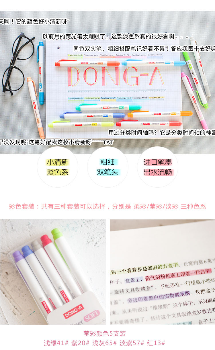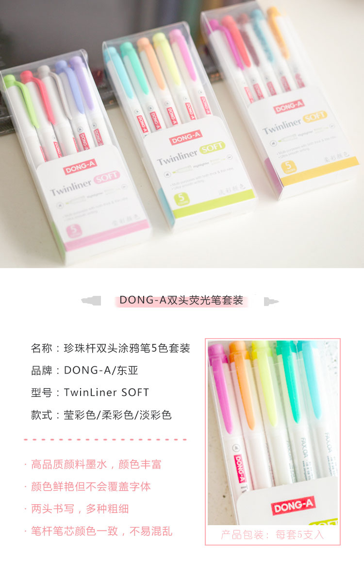 东亚珍珠杆双头涂鸦笔套装5色TLS-5C