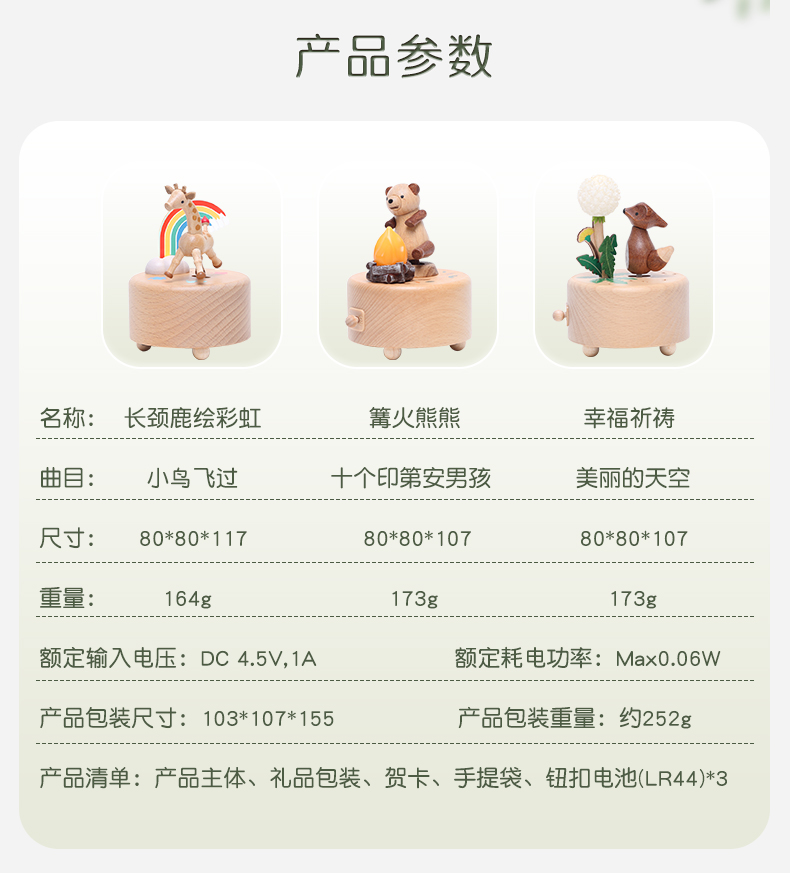 wooderfullife 音乐盒 长颈鹿绘彩虹