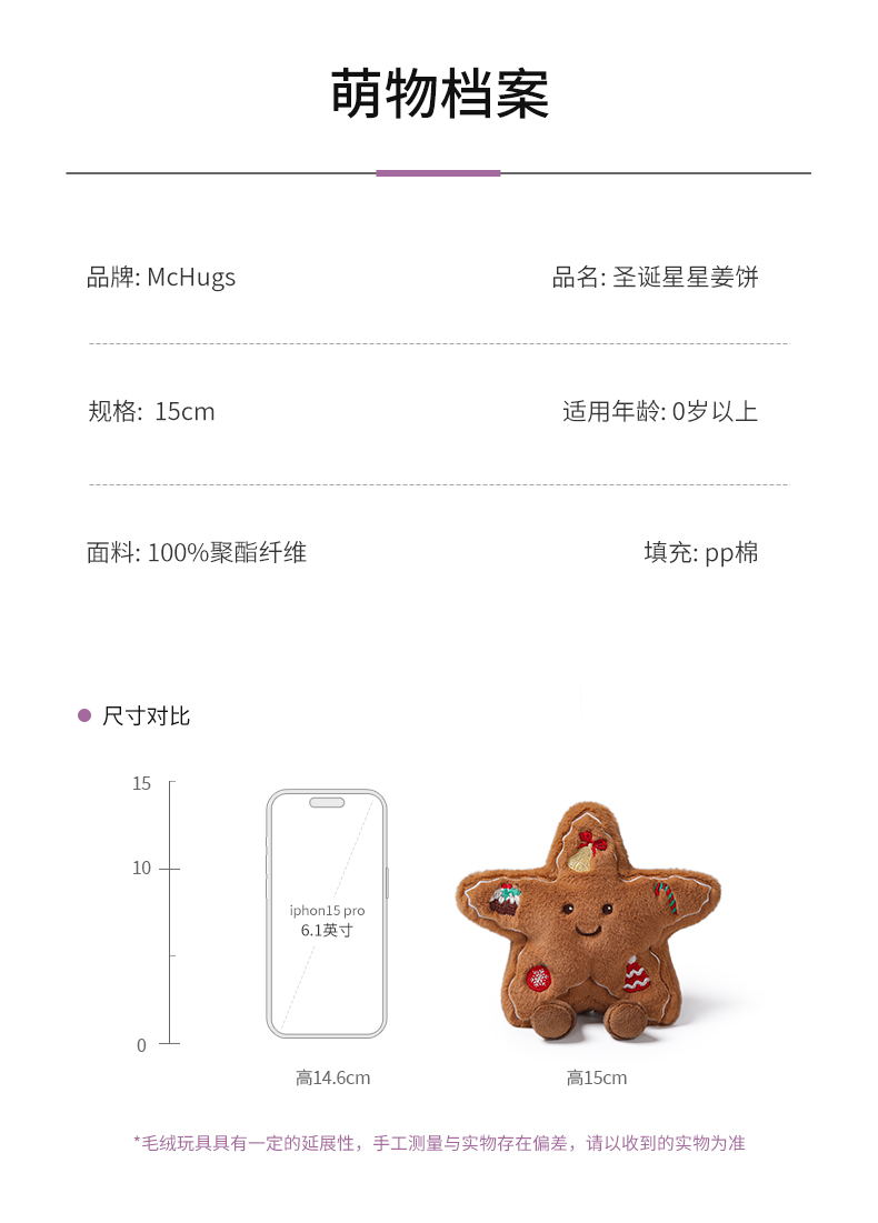MChugs 圣诞星星姜饼 15CM 玩偶毛绒娃娃玩具生日礼物公仔
