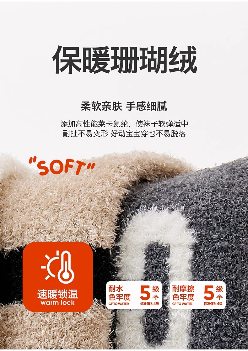 M19972-4(14-16cm / 鞋码21-24 / 2-3岁宝宝袜)贝比珊瑚绒童袜4双装