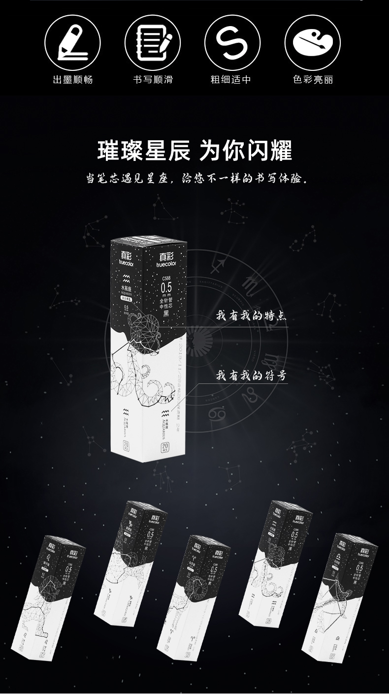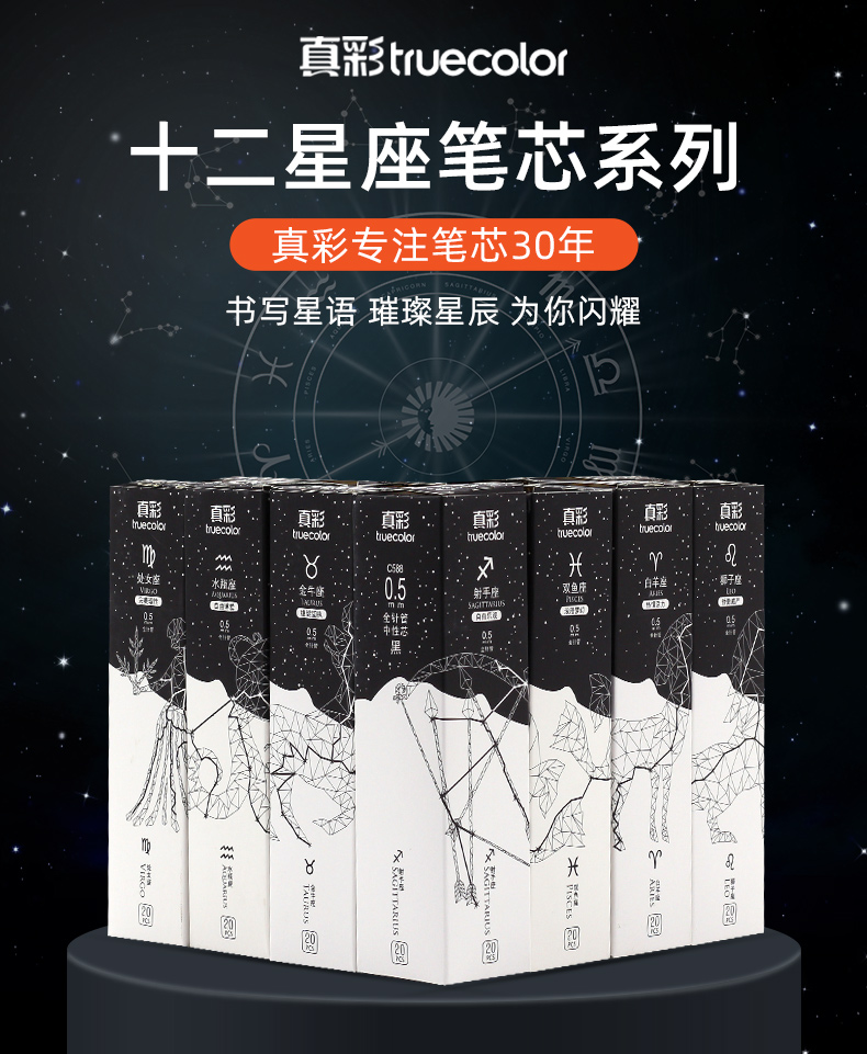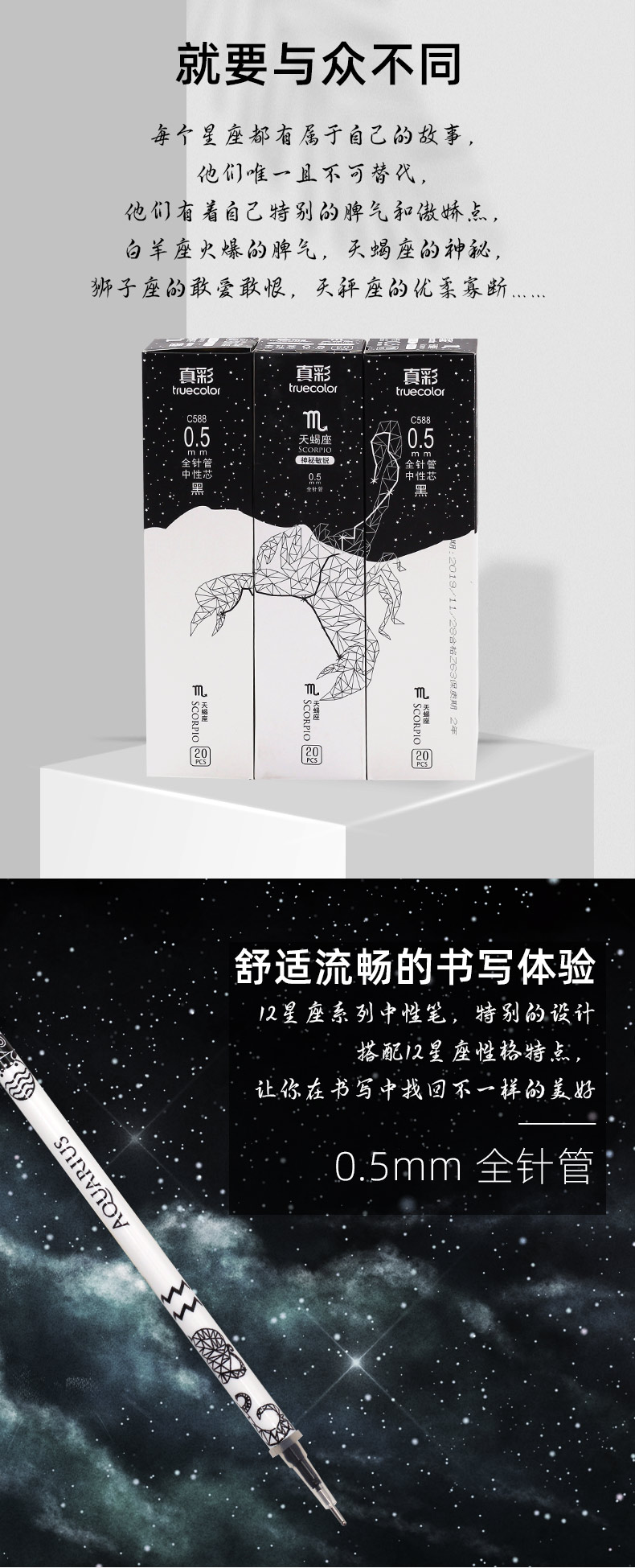 真彩十二星座系列中性笔替芯0.5/C588/混色办公学生考试学习用品笔芯替芯