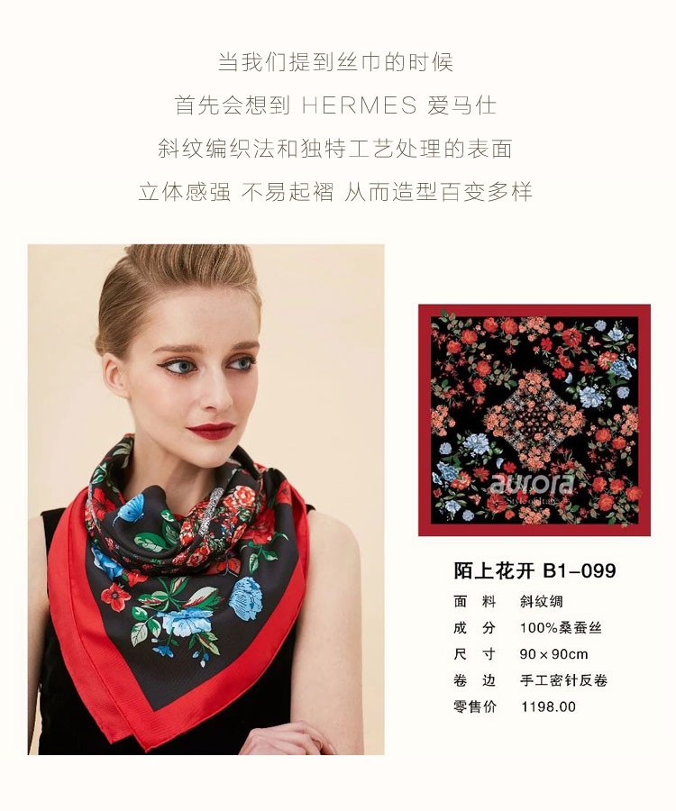 奥罗拉桑蚕丝巾/陌上花开/B1-099