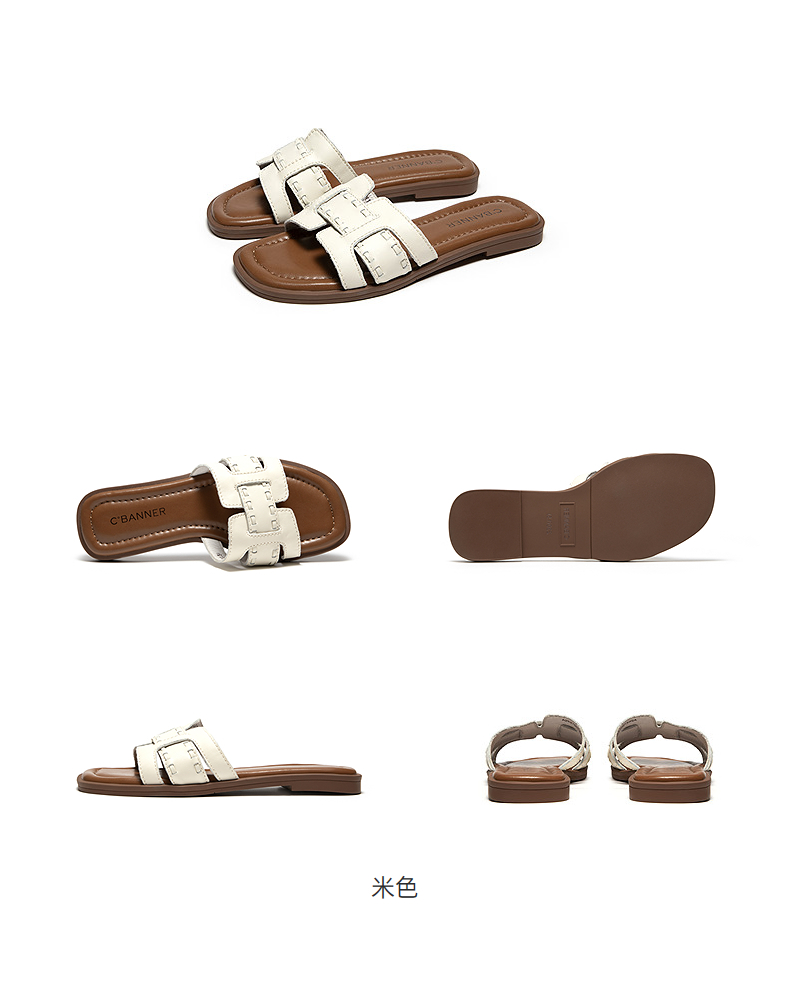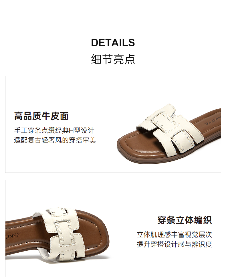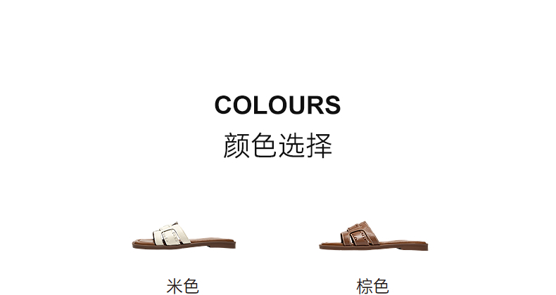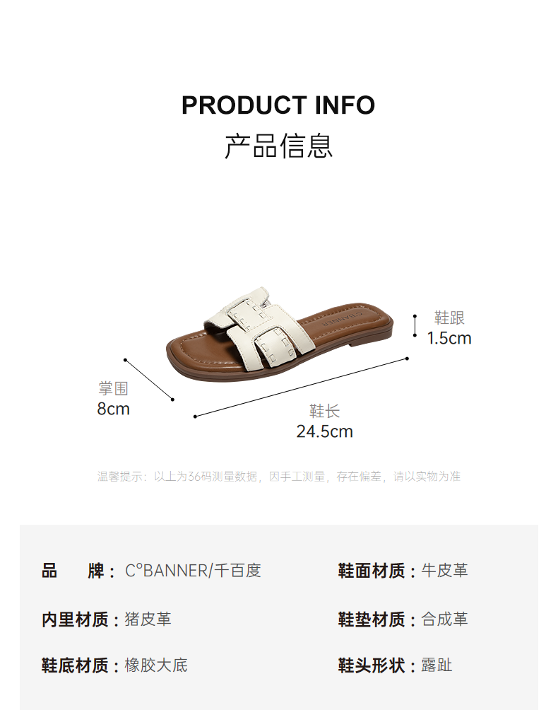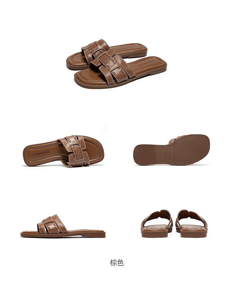 【上新】千百度立体编织牛皮平底凉拖鞋女2026夏季新款外穿一字拖A26370013