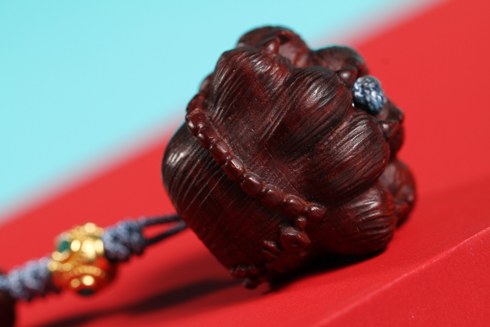 紫檀鱼与掌/银镀24K(4绿松)/紫檀轮回珠