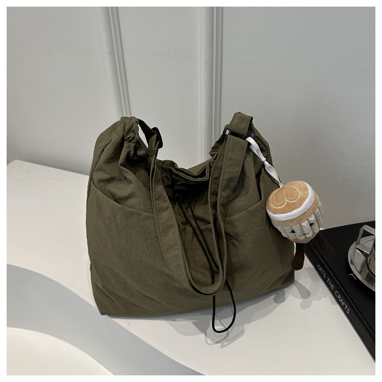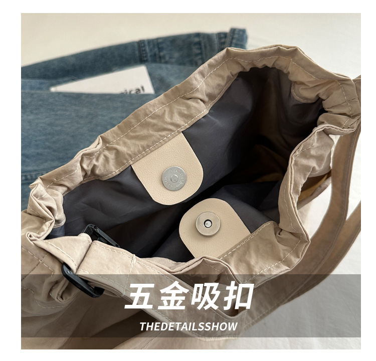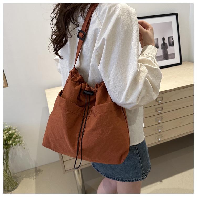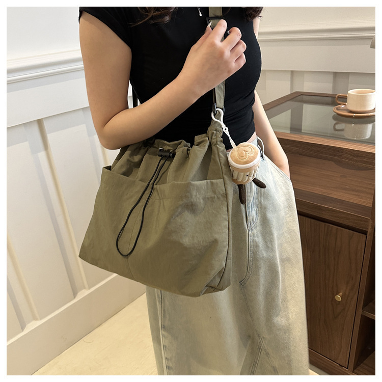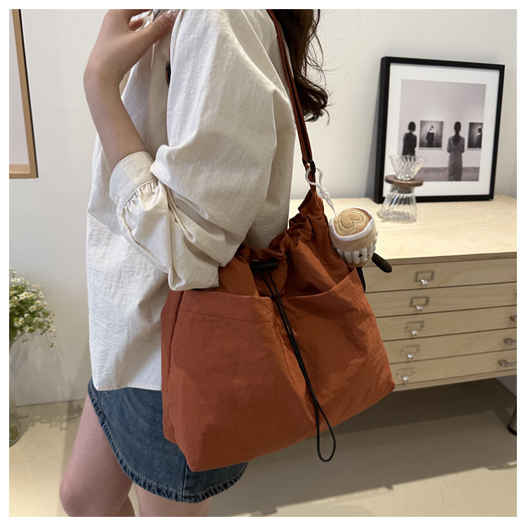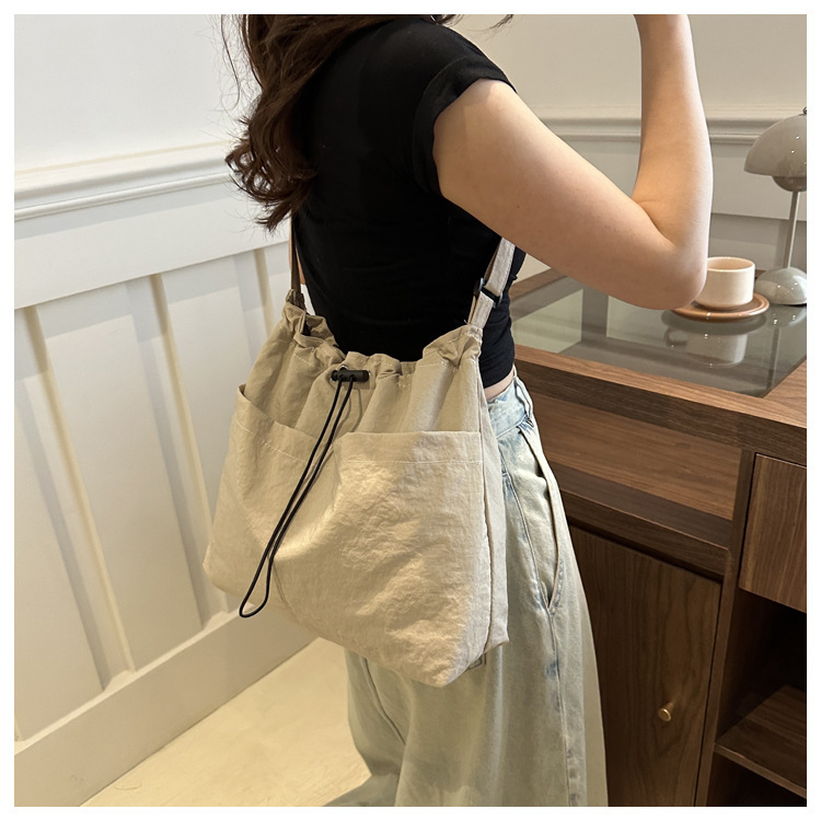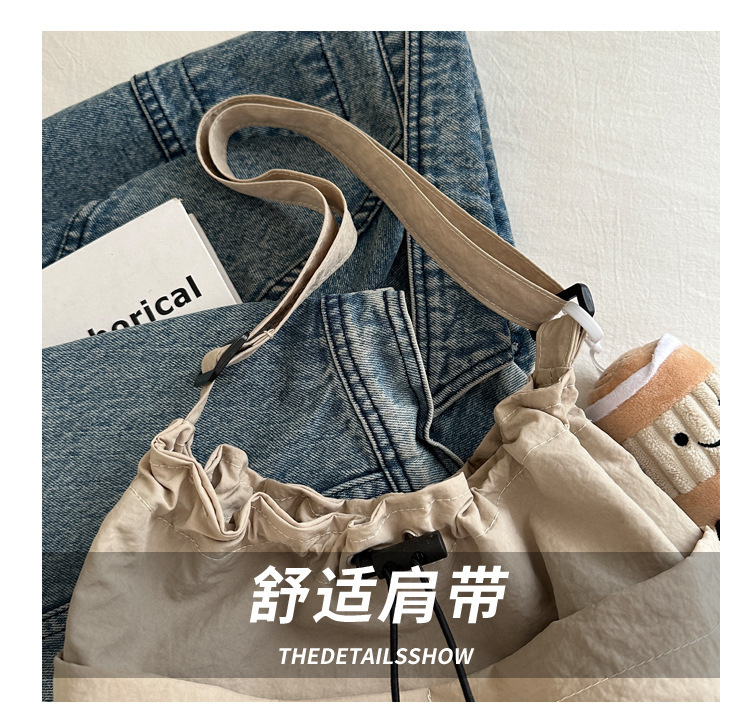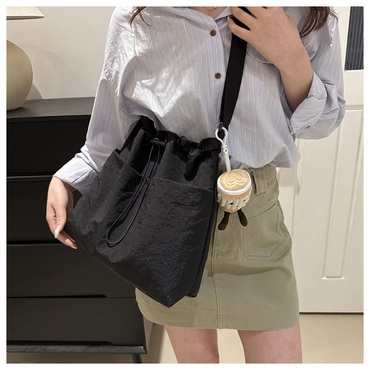 「29.9到手!拼团同款」韩版休闲文艺帆布水桶包 时尚抽绳单肩女包网红褶皱尼龙水洗斜挎包箱包