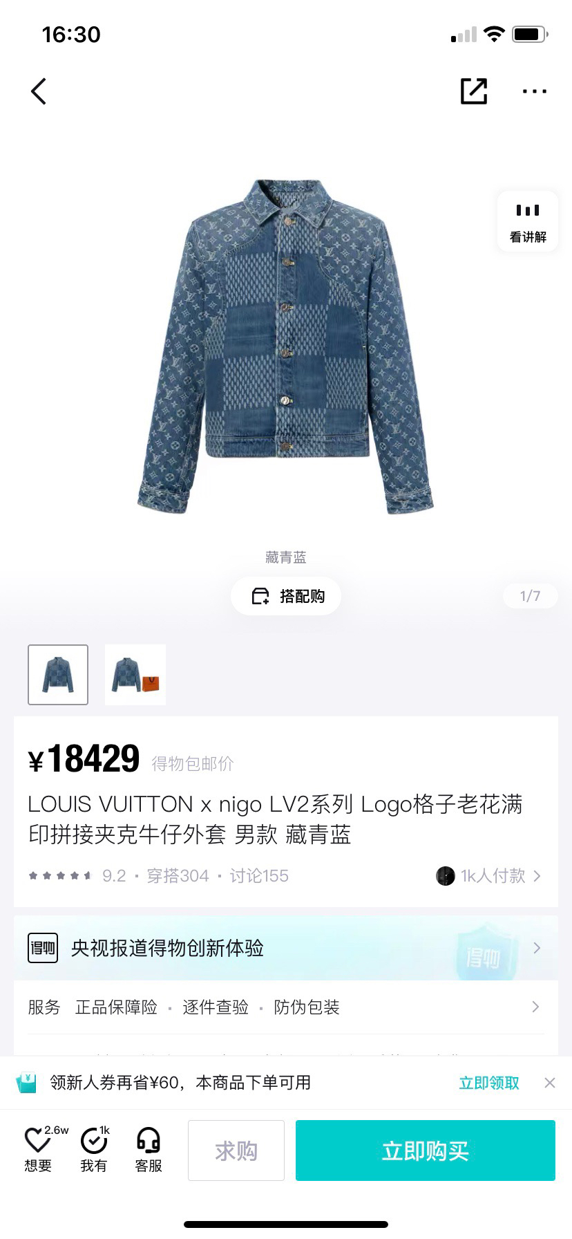 新品 1V✖️Nigo 经典款棋盘格牛仔夹克外套