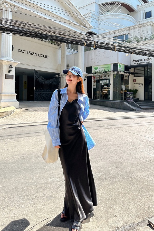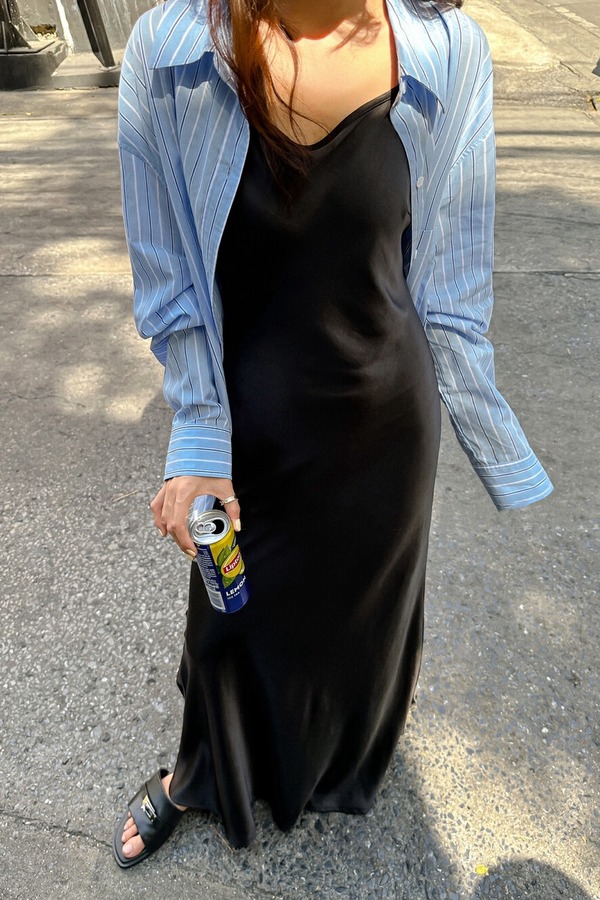 HAYES 黑色光泽感百搭吊带连衣裙 20224