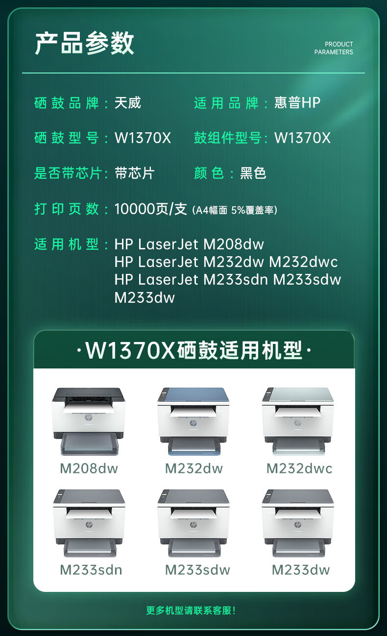 天威137a硒鼓w1370a硒鼓适用惠普m232dw硒鼓 m233sdw m233dw m208dw m233sdn打印机超大容带芯片1支