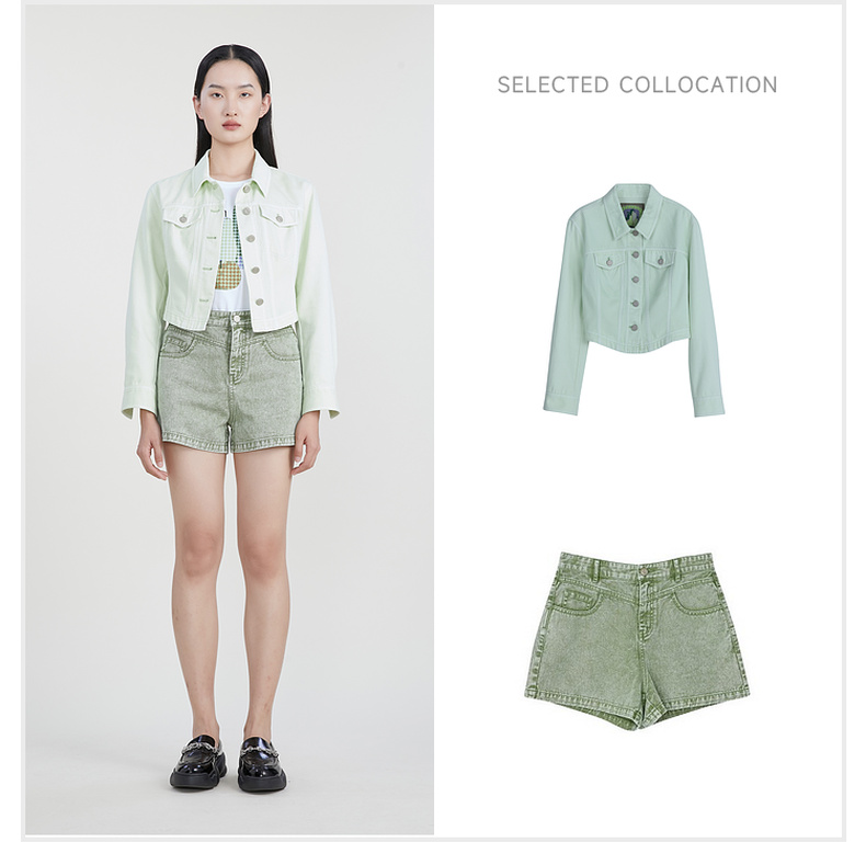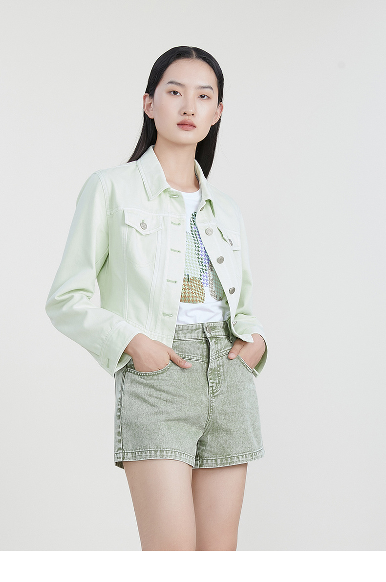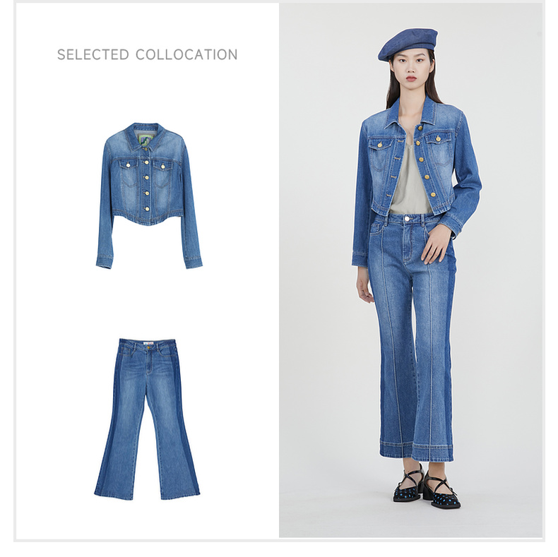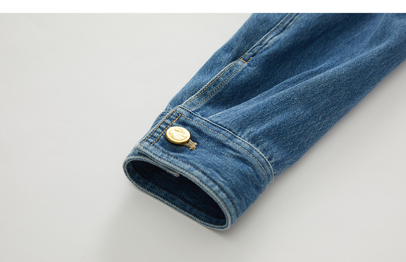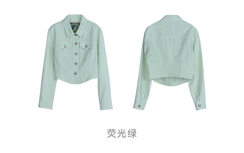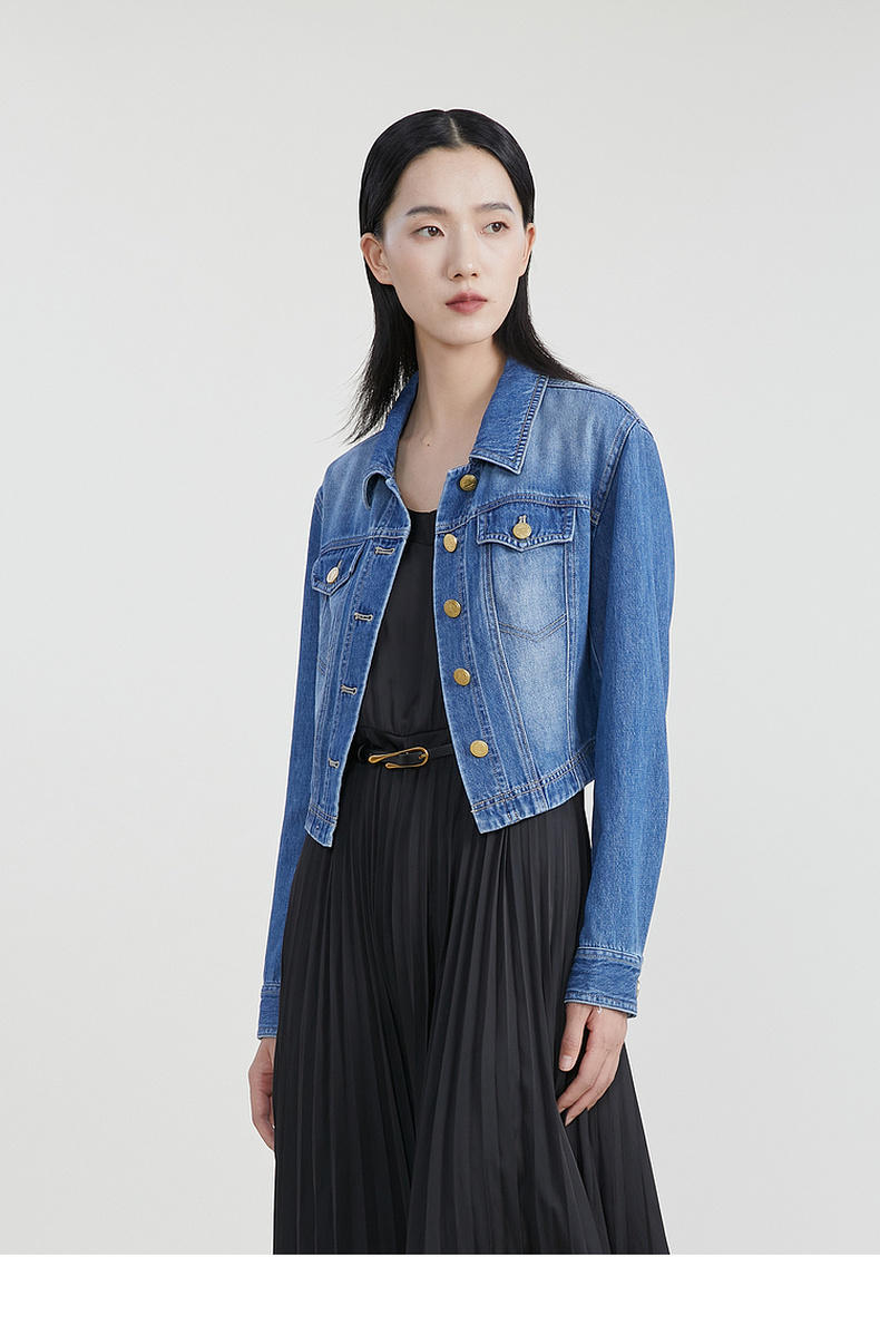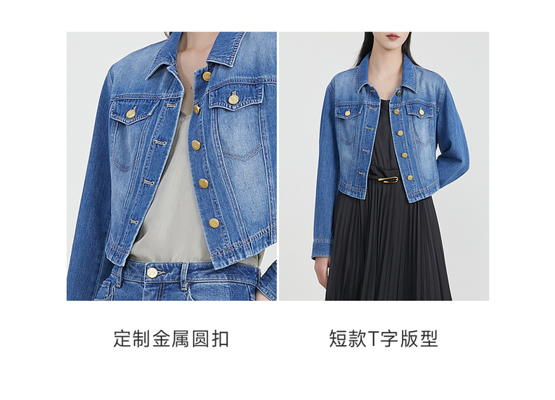 谜底短款牛仔外套女2023春新款复古百搭修身单排扣长袖231MW0033