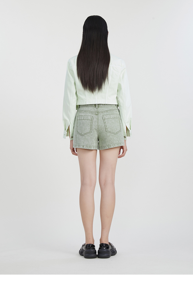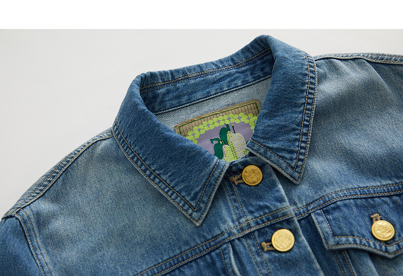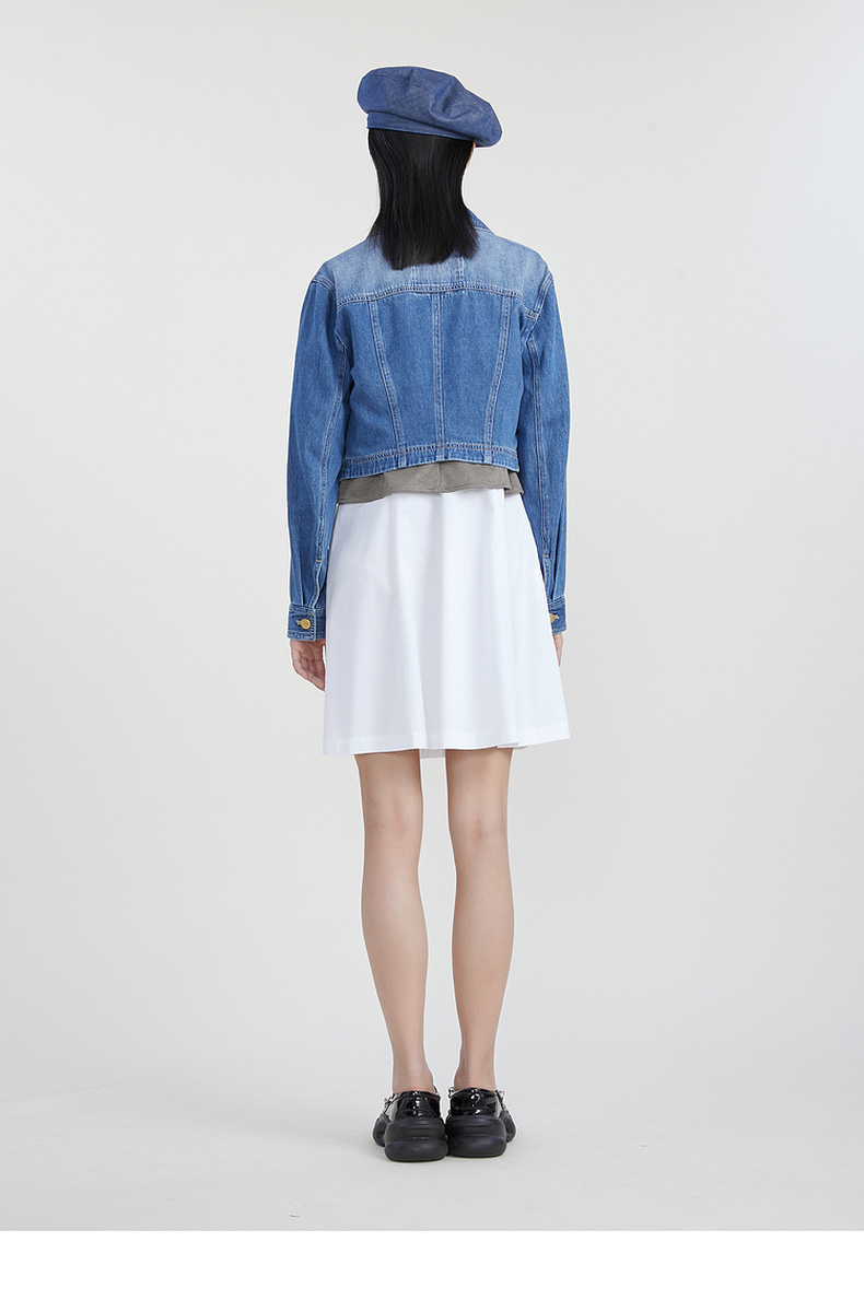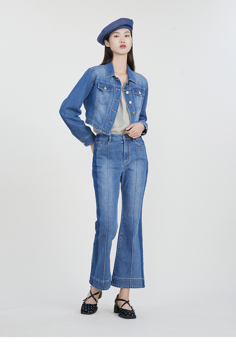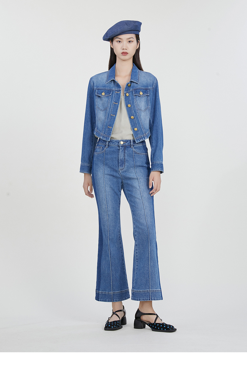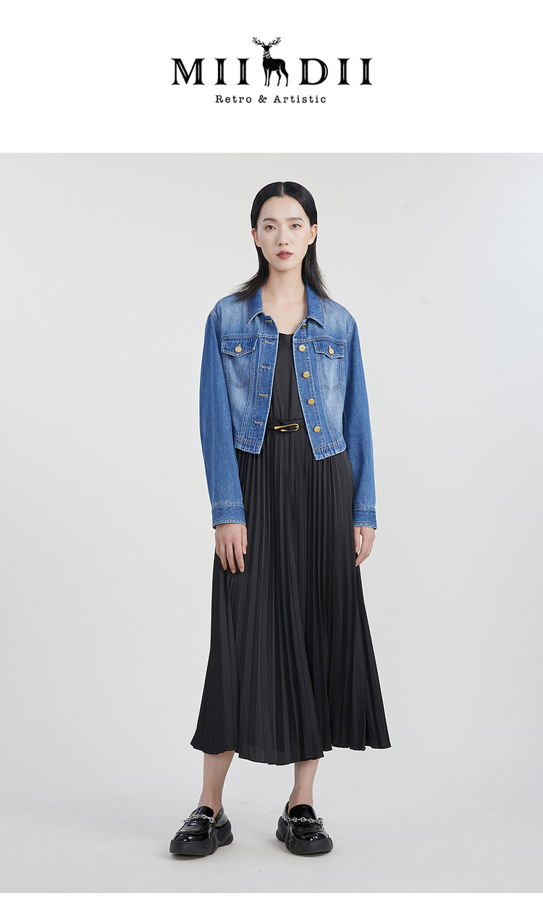 谜底短款牛仔外套女2023春新款复古百搭修身单排扣长袖231MW0033