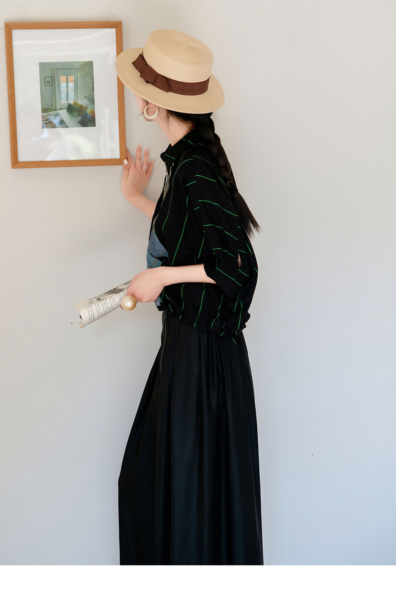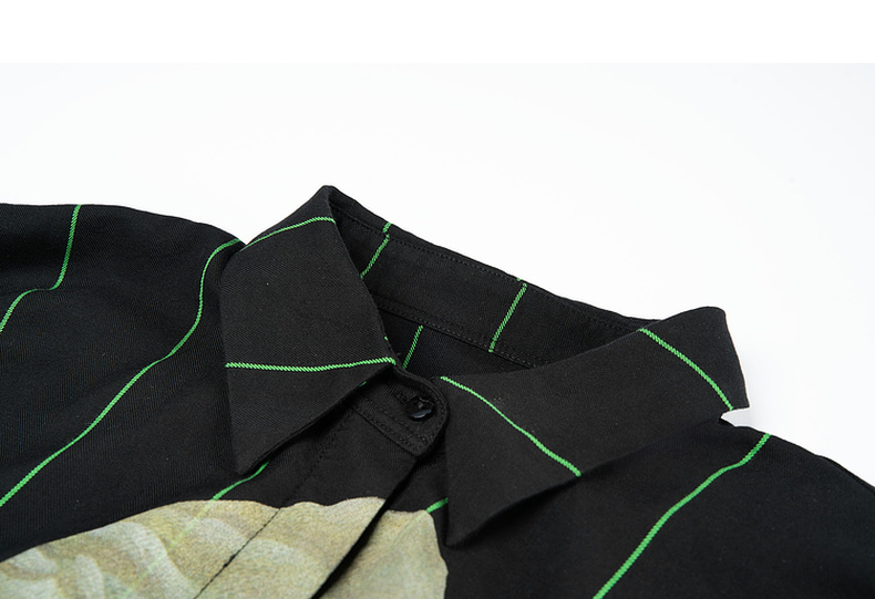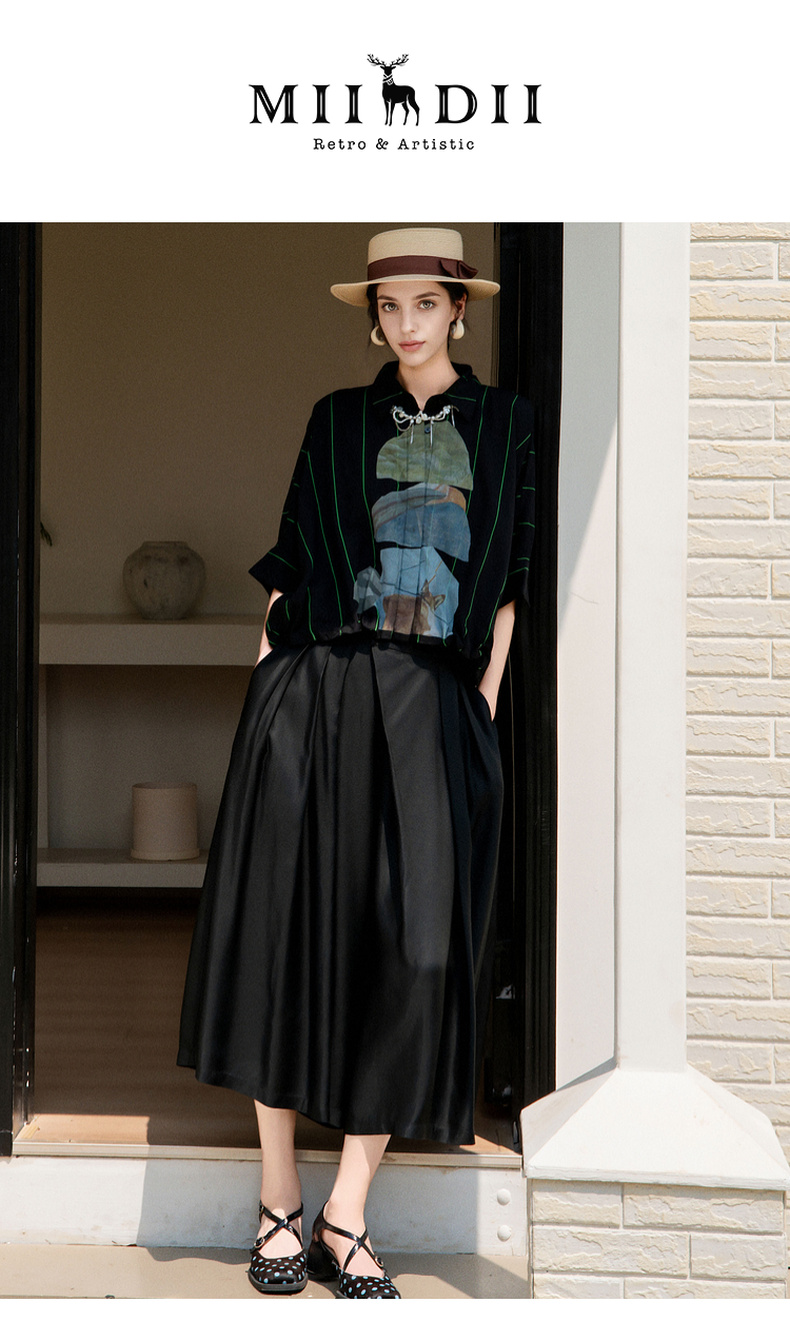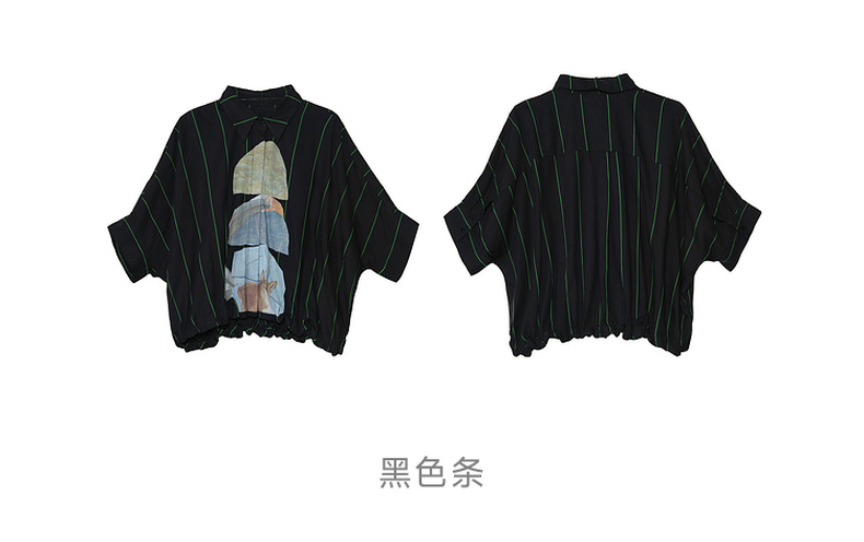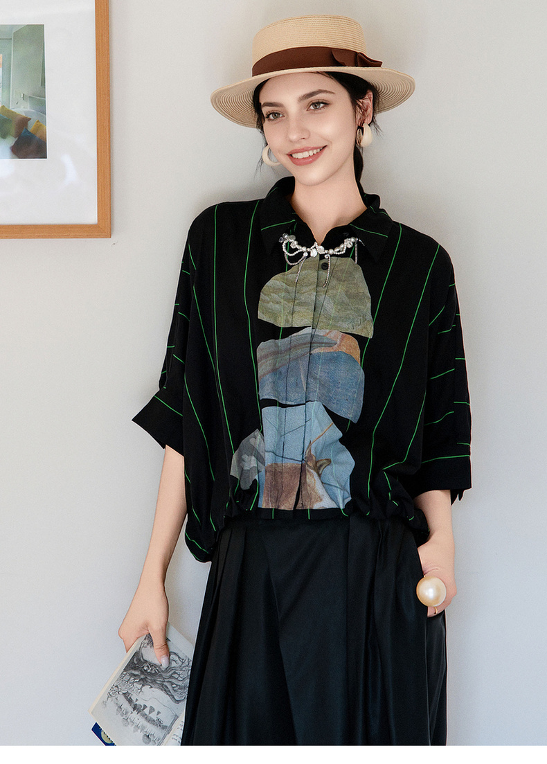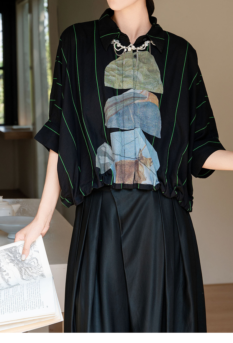 谜底大廓形印花衬衫分袖女2025夏季新款下摆可收缩衬衣256MC6207