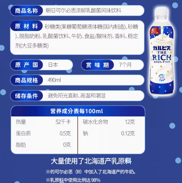 朝日 可尔必思香浓乳酸菌饮料490ml