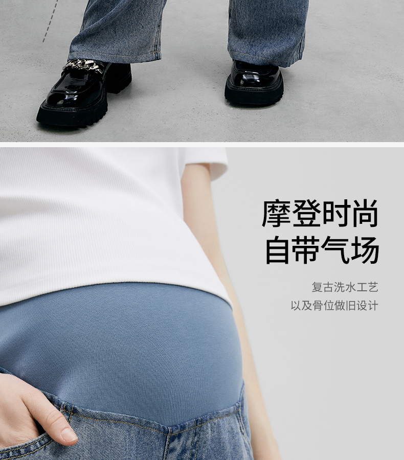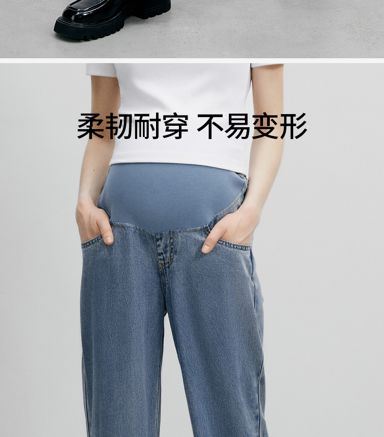 嫚熙孕妇裤牛仔休闲设计长裤孕期女外穿时尚修身裤子托腹春夏新款