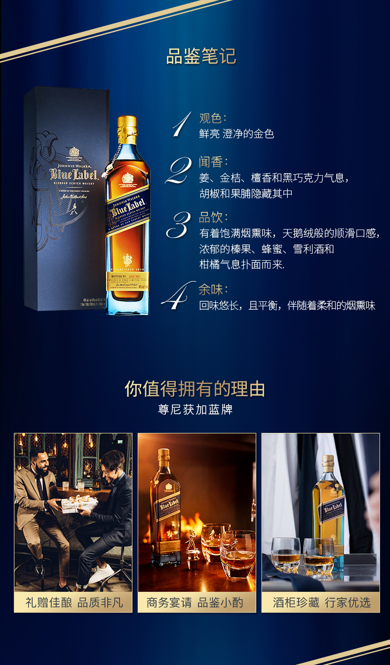 尊尼获加蓝牌苏格兰威士忌750ml*1