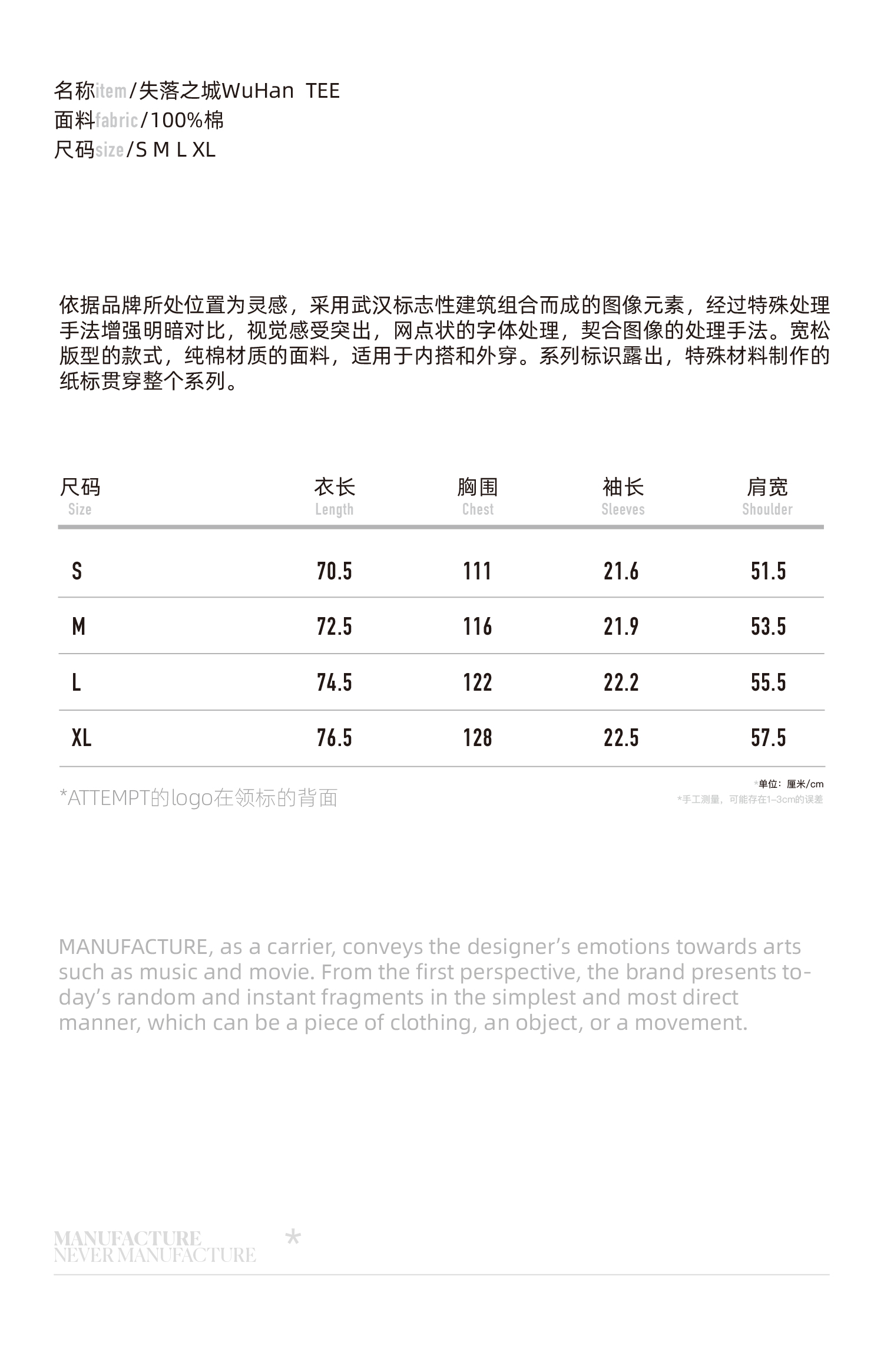 MANUFACTURE BY ATTEMPT 失落之城WuHan短袖T恤