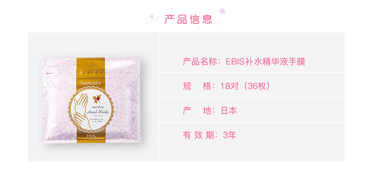 EBIS惠百施 胶原蛋白玻尿酸胎盘素补水保湿手膜36片 18对 日本