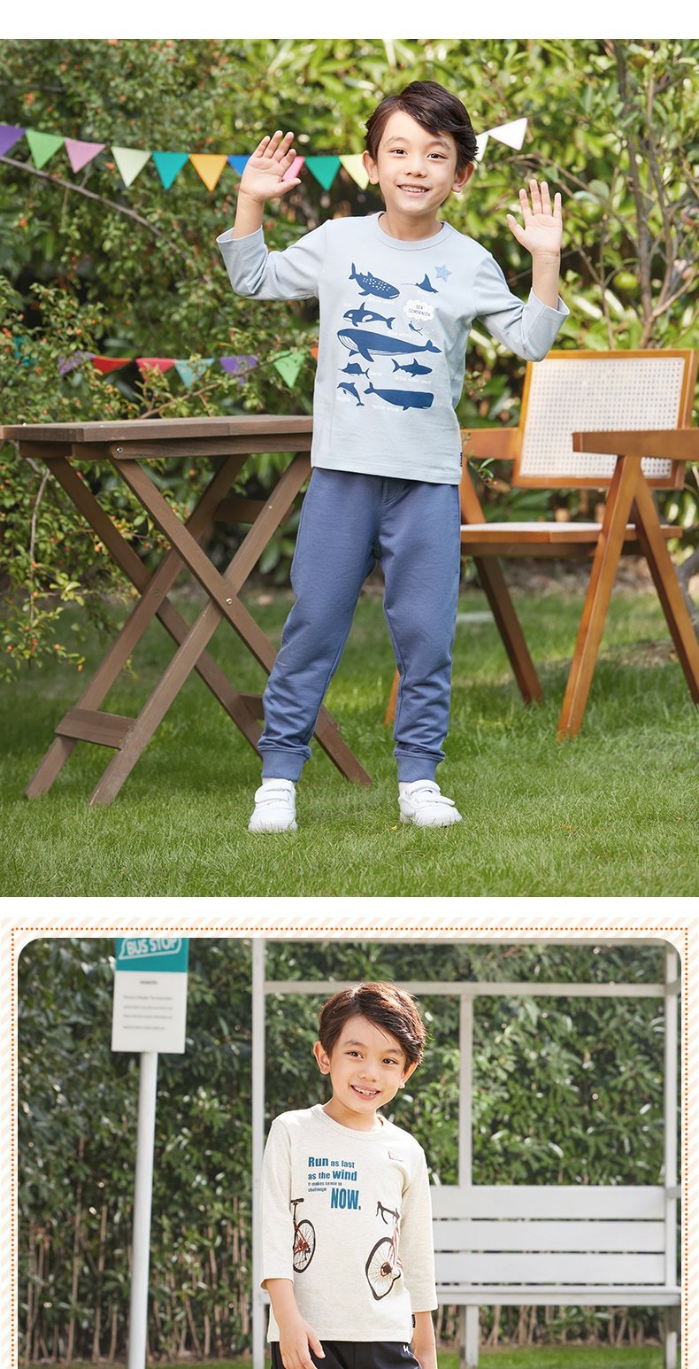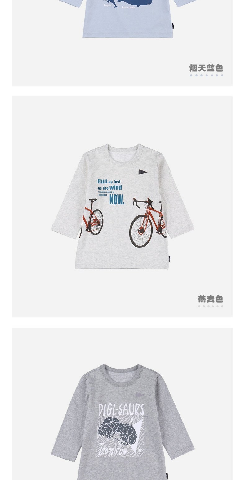 千趣会童装春秋男童宝宝时尚童趣印花棉质针织七分袖T恤上衣