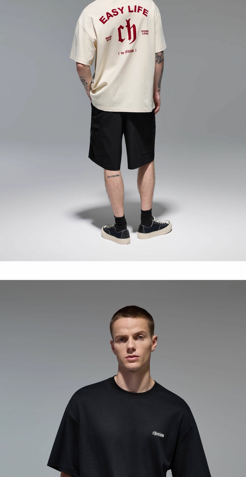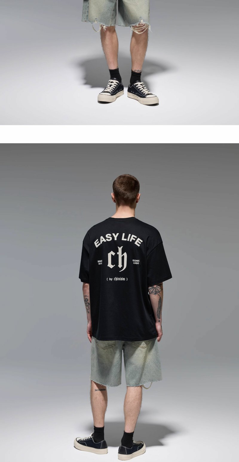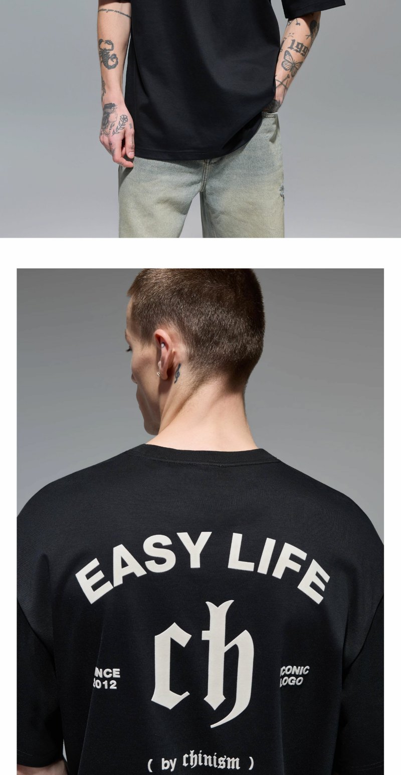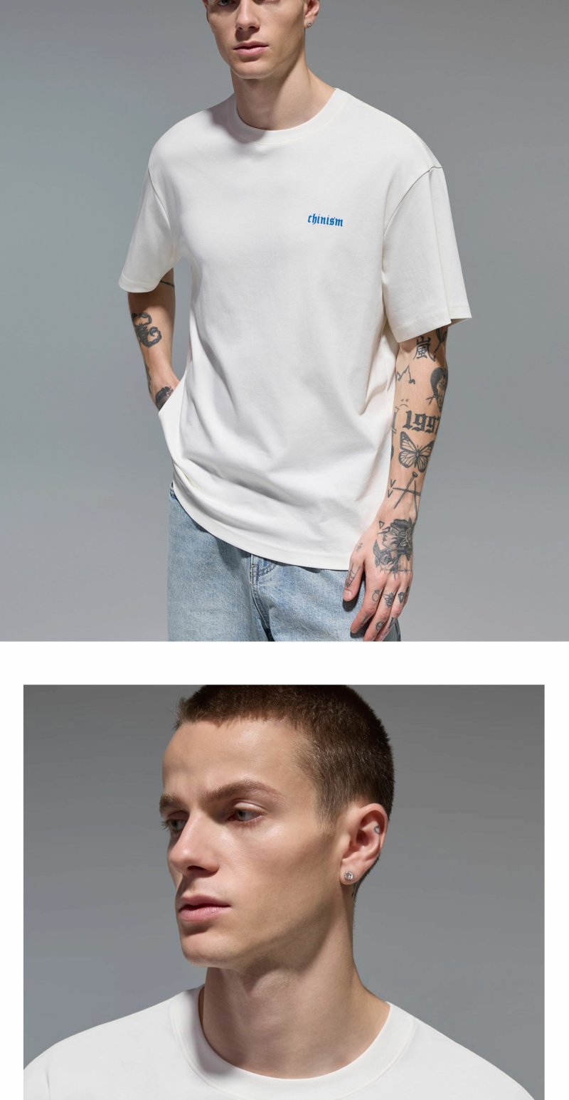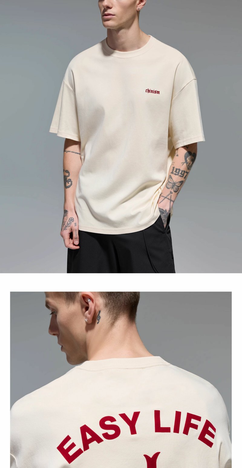 CHINISM赤尘 CH植绒字母印花短袖t恤男夏季新款宽松男生半袖上衣