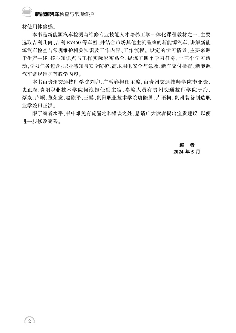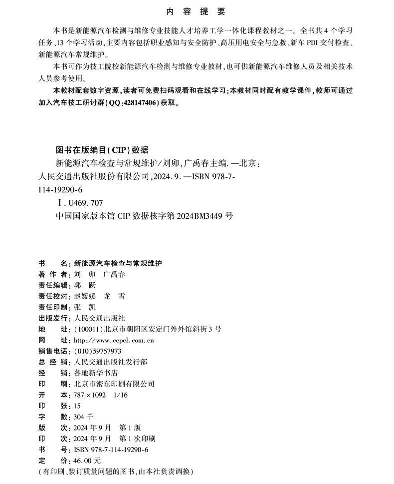 书名:新能源汽车检查与常规维护