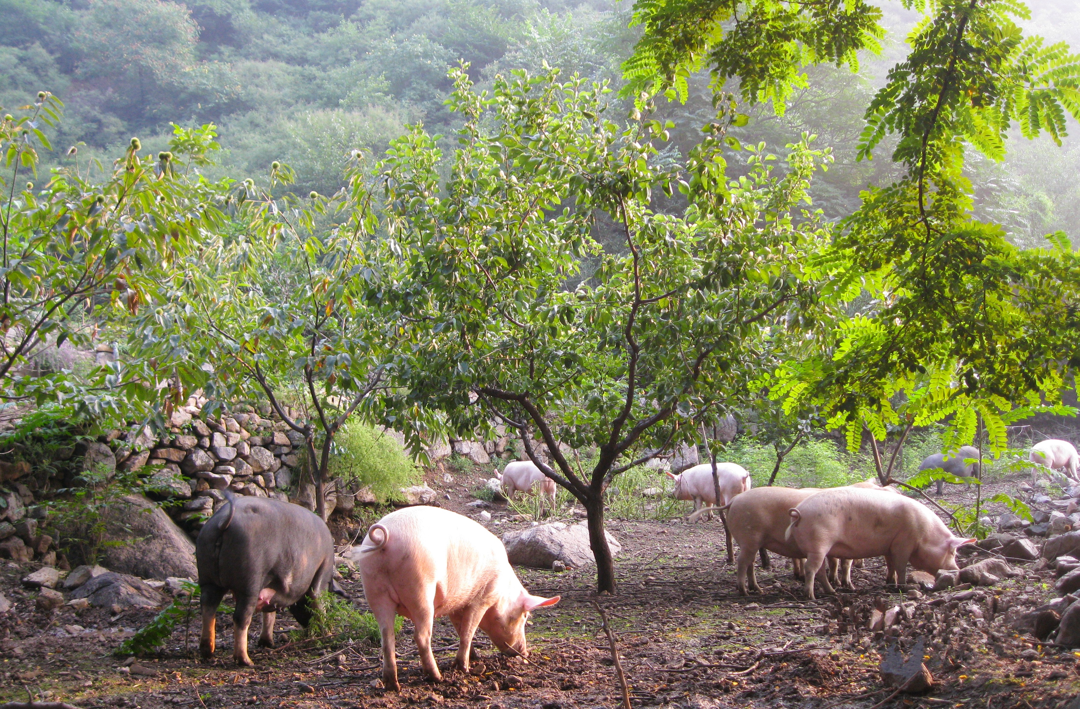 猪仔们都可以在松下林间奔跑,喝山泉吃野生山珍