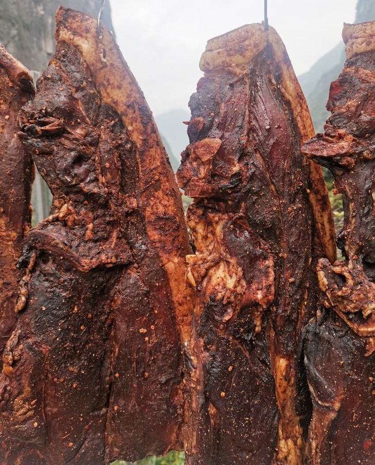 后来得知雅安宝兴,有一对夫妻在山上养猪做腊肉