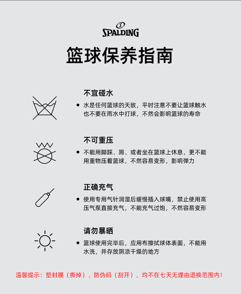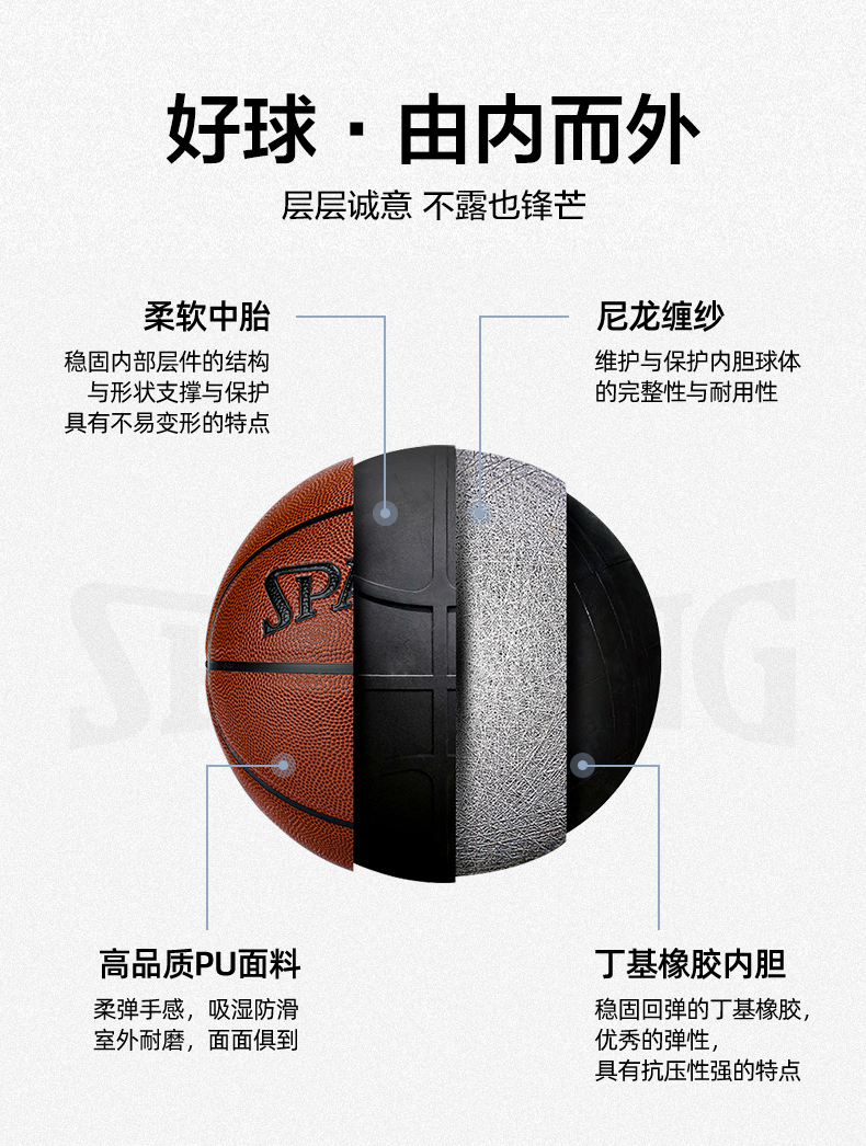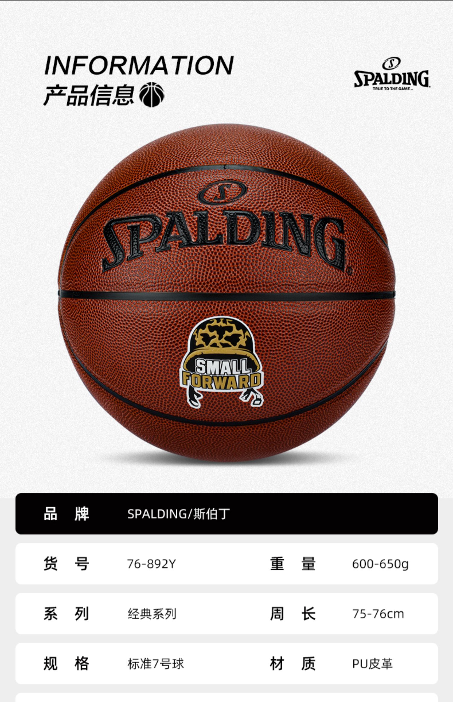 篮球---斯伯丁篮球正品室内外水泥地耐磨7号PU比赛76-892Y