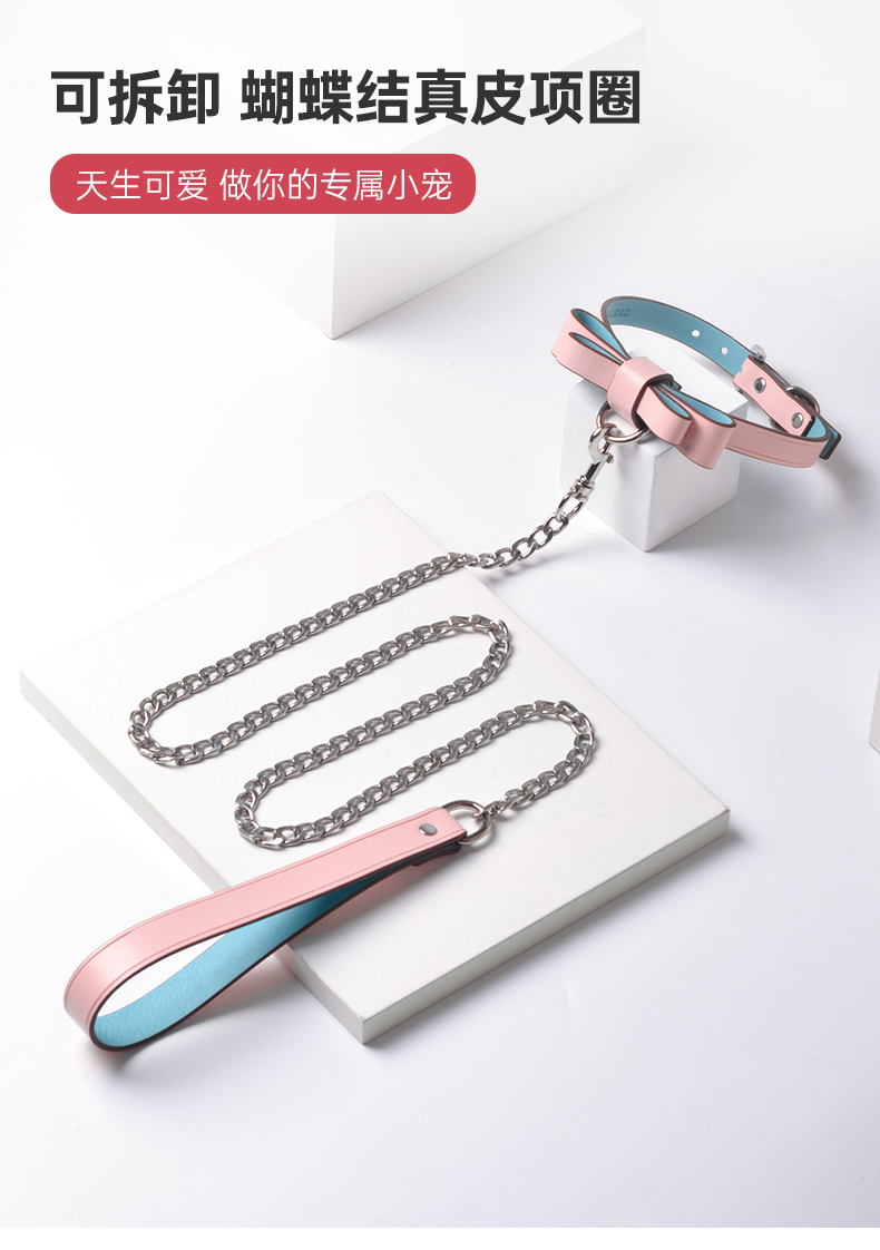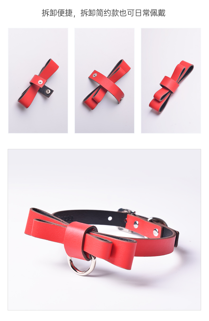 马卡龙蝴蝶结真皮项圈 可拆卸