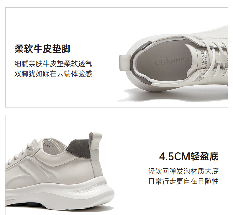 千百度男鞋厚底增高男士时尚休闲鞋小白鞋轻便运动鞋A25180113