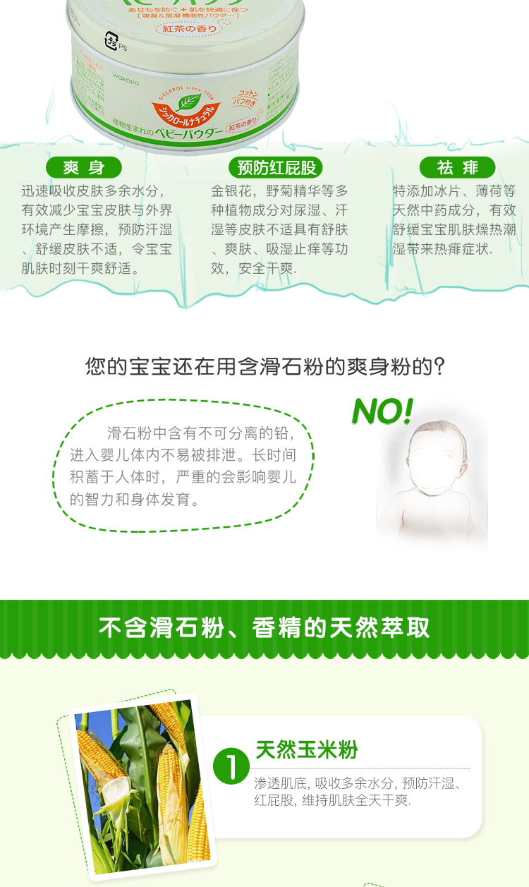 和光堂 儿童爽身粉宝宝去痱止痒【不足200元订单,默认顺丰快递到付】