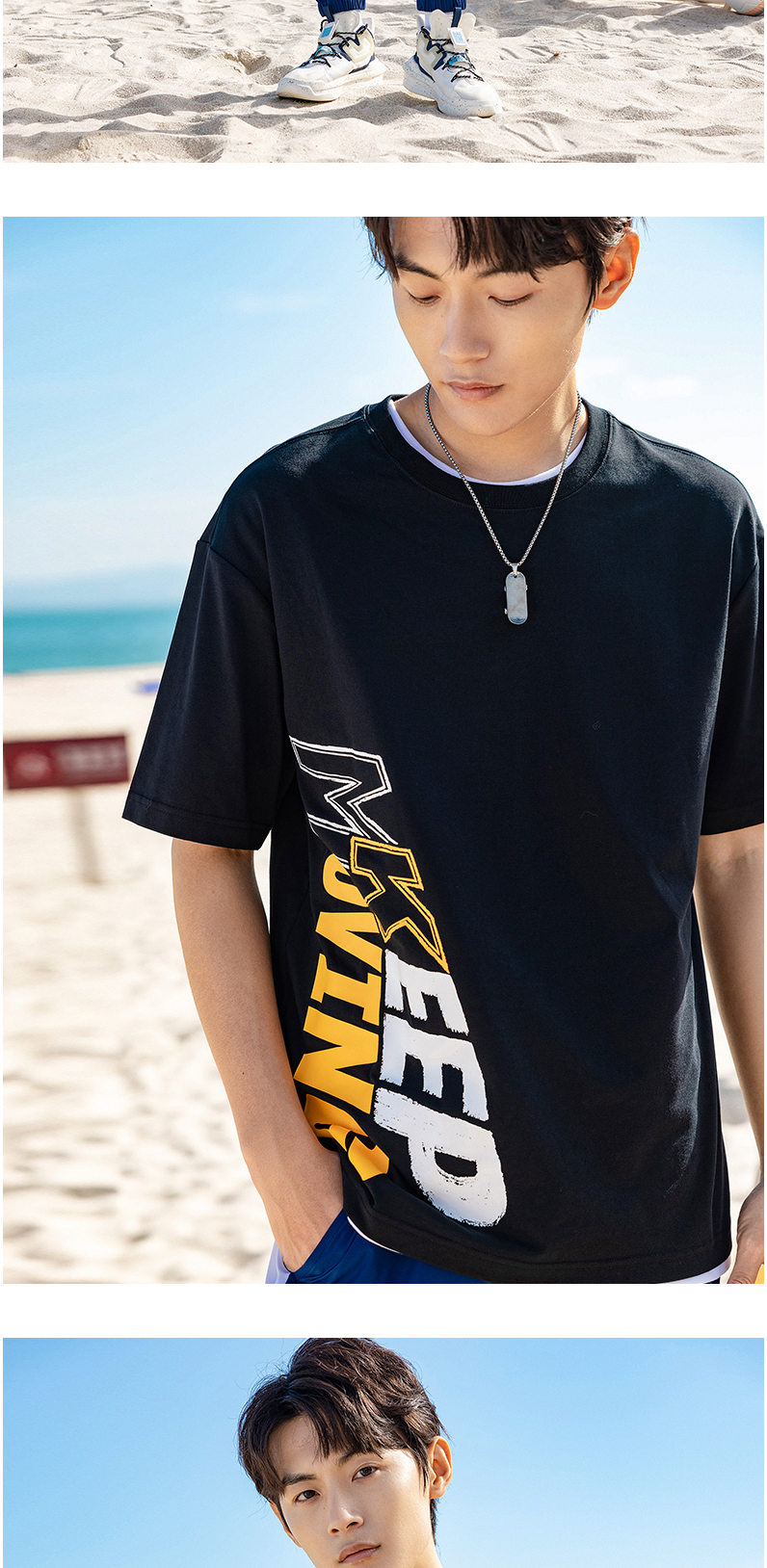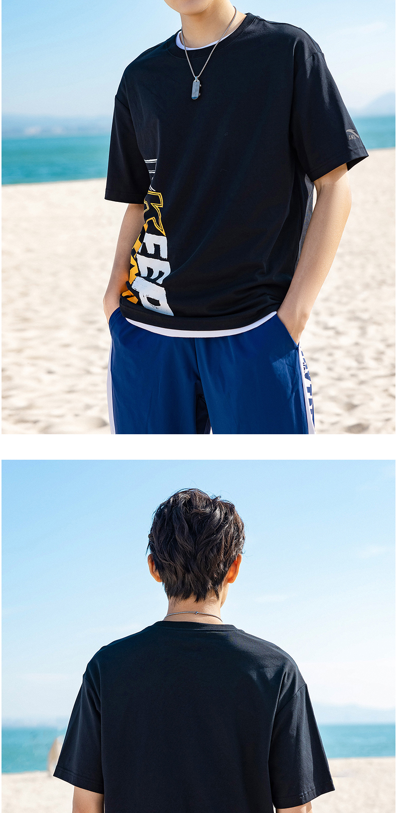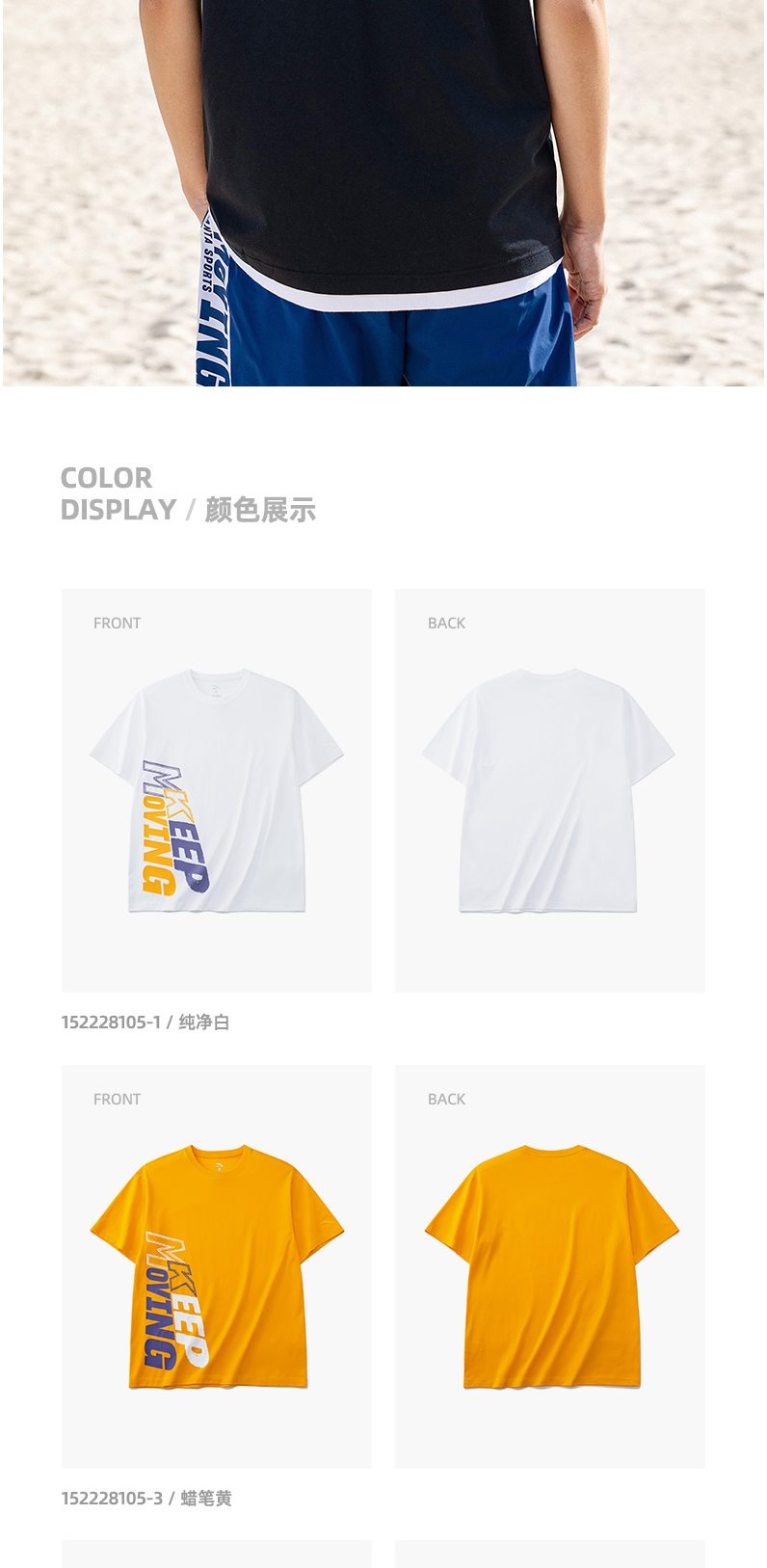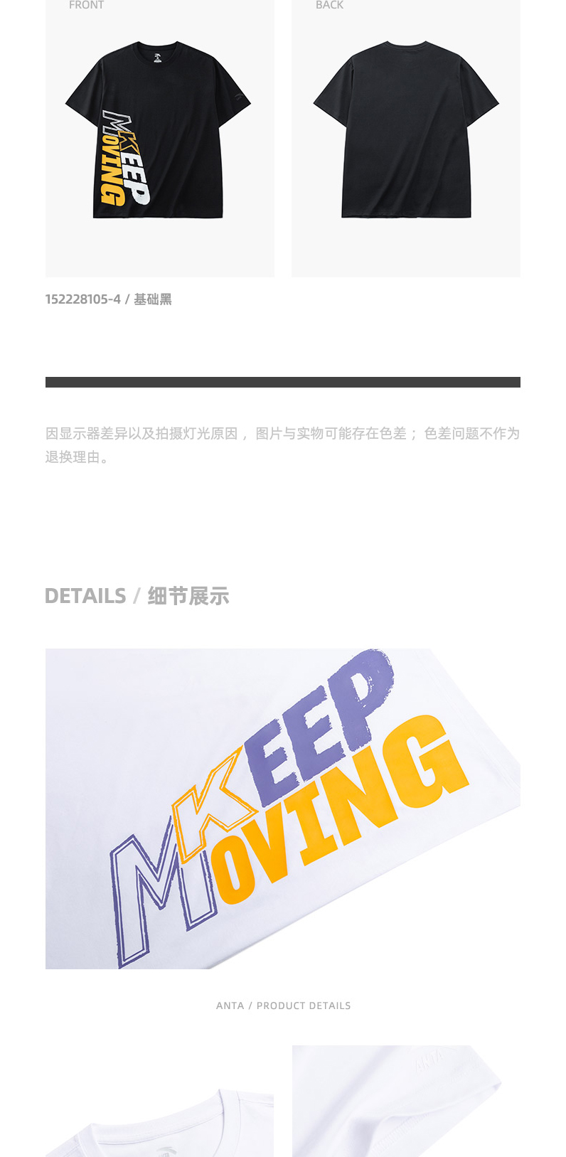 安踏短袖T恤男女同款2022夏季新款圆领宽松情侣印花上衣152228105-1/4