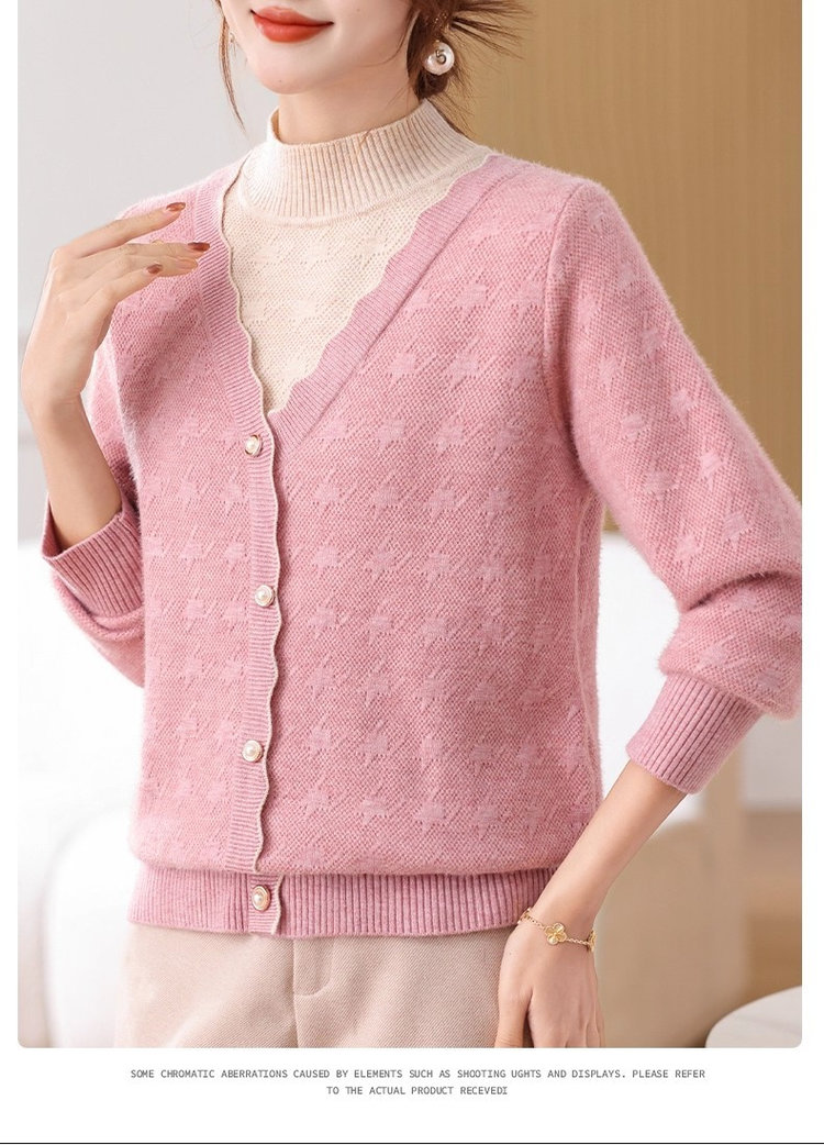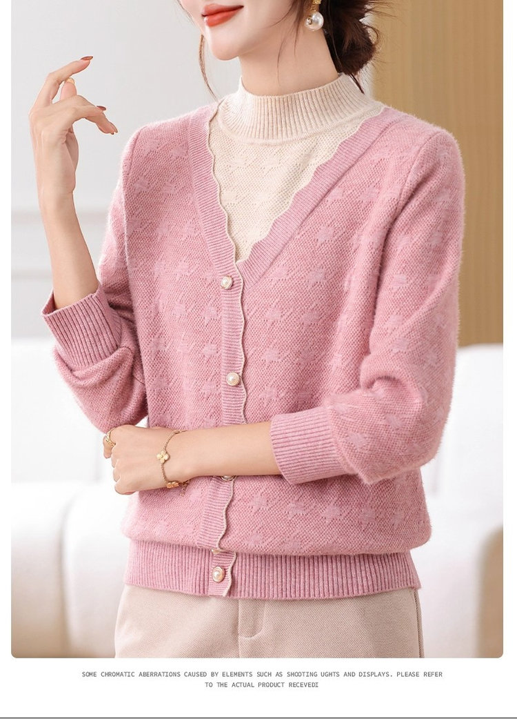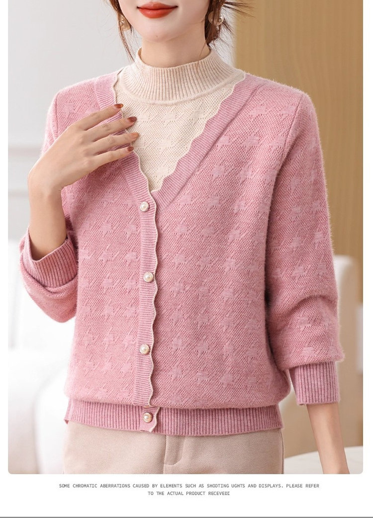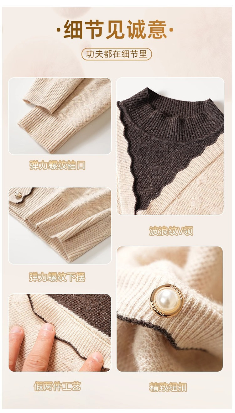 【俏墨冬装假两件中老年针织衫】👩这款妈妈装就是好的礼物🎁 ✅款式气质温柔,洋气百搭! ✅宽松版型,遮肉包容性强,上身利落有型!-MMTYS